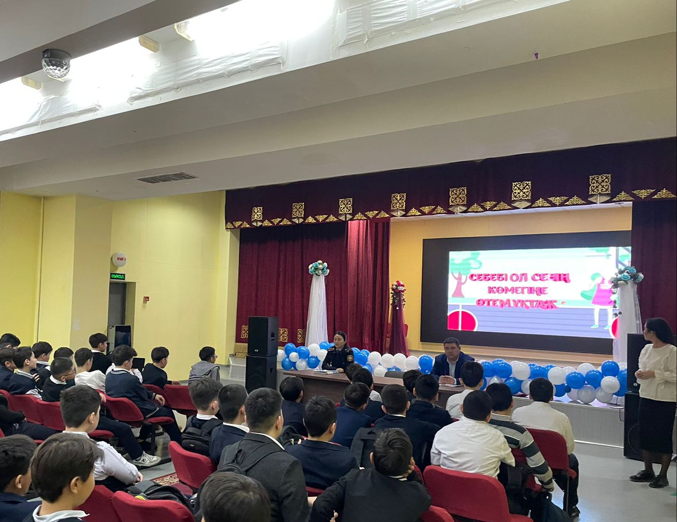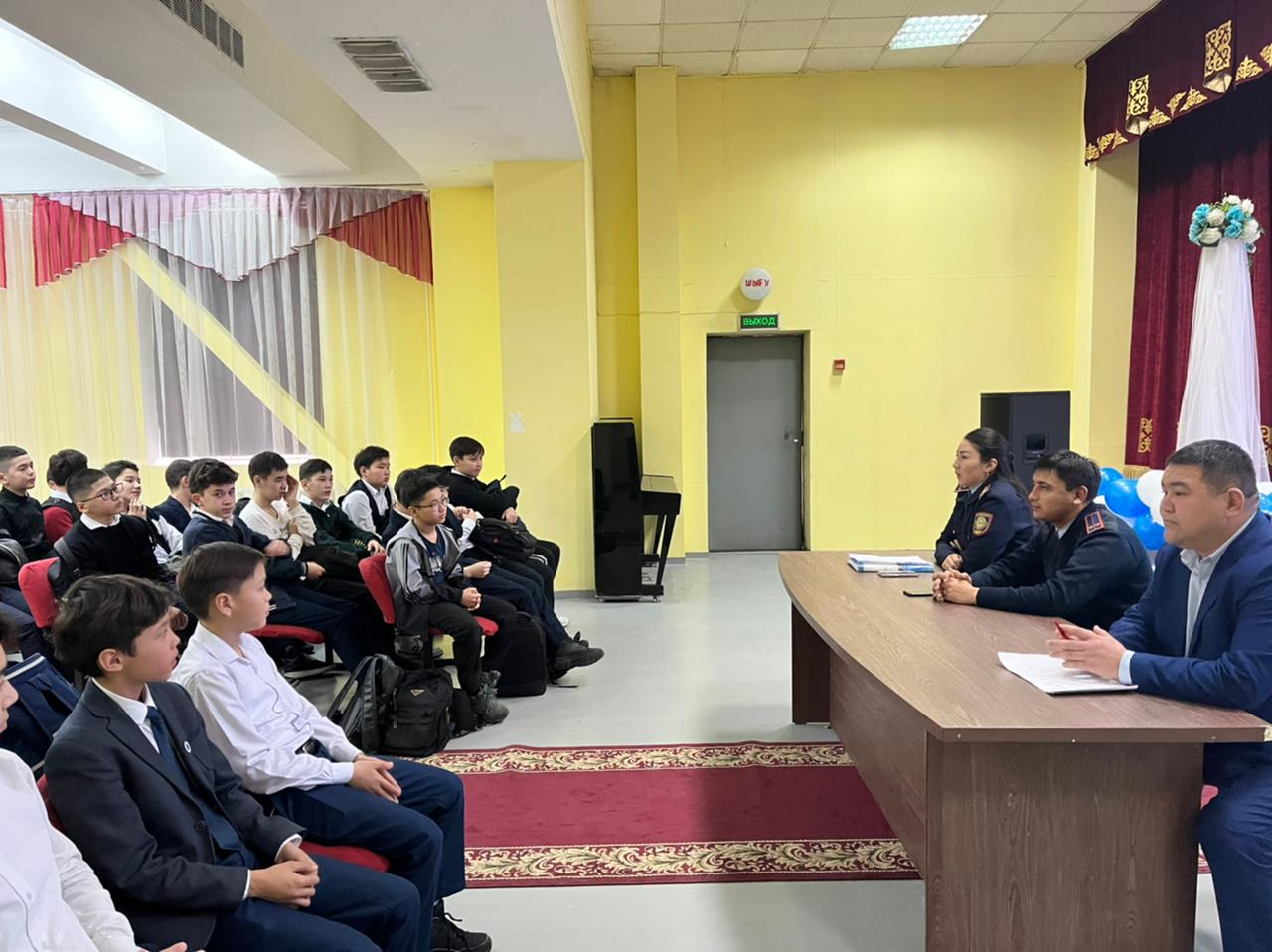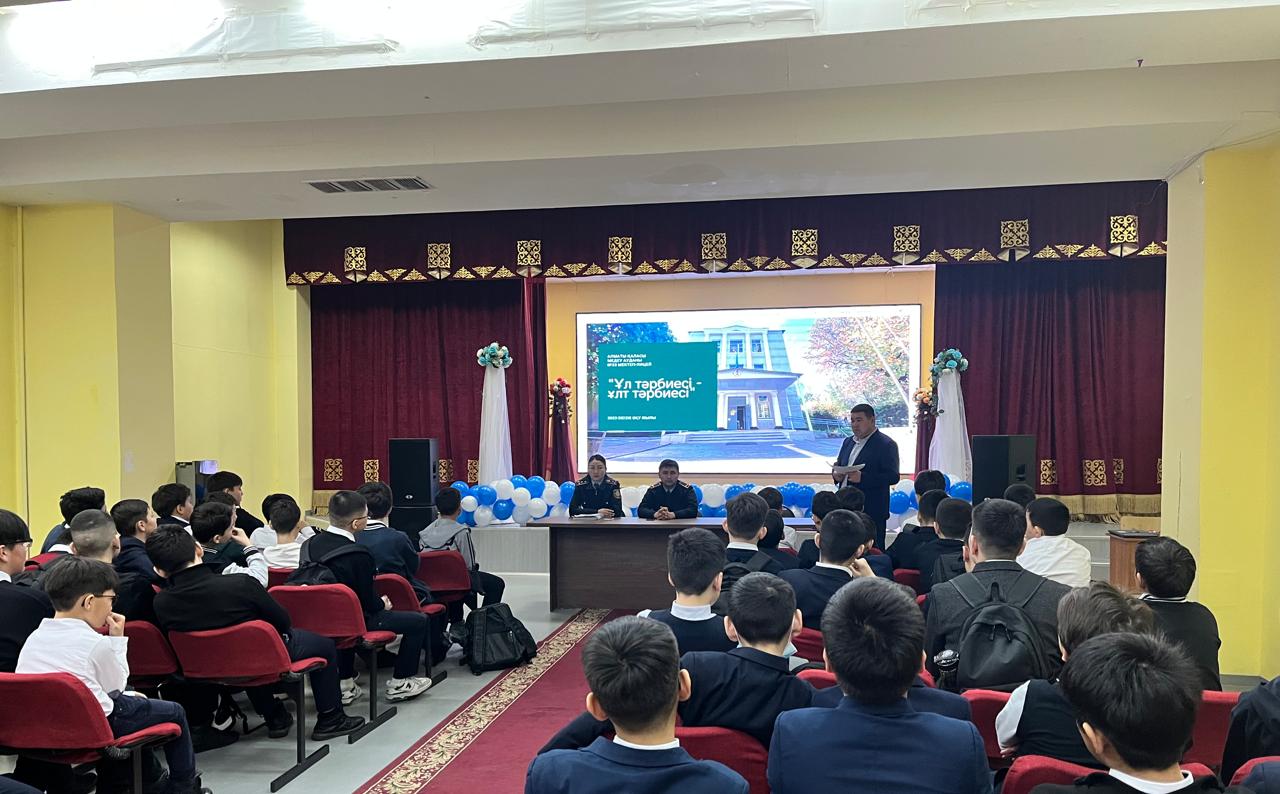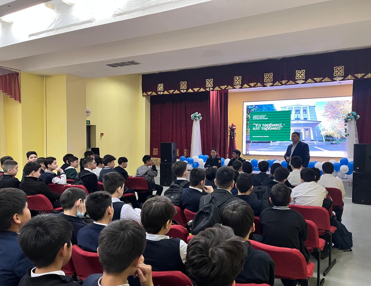 Бүгін, мектебімізде "Ұл-тәрбиесі- ұлт тәрбиесі" тақырыбында 6-7 сынып ер балаларының арасында мектеп инспекторларымен жиналыс өтті. Жиналыстың мақсаты: Ер балалар арасында зиянды әдеттердің алдын алу, спорттық іс- шараларға қатыстыру арқылы салауатты өмір сүру салтын насихаттау, өскелең жас ұрпақтың бойында патриоттық білім мен өзін-өзі жетілдіруге деген құштарлық, Тәуелсіз Қазақстанның бүгіні мен болашағына деген жауапкершілікті қалыптастыру.