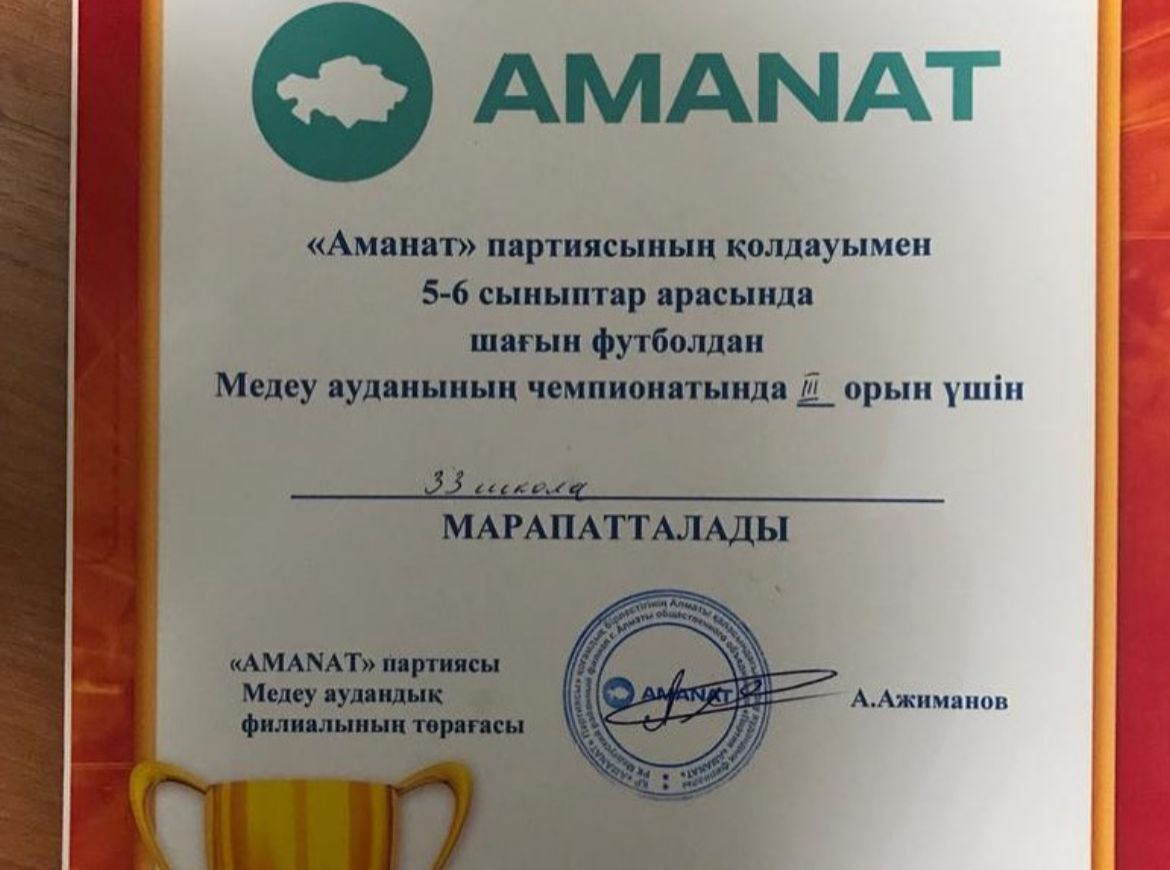 🏆Аманат партиясының ұйымдастыруымен 5-6 сыныптар арасында шағын футболдан Медеу ауданының чемпионатында мектеп-лицейіміздің оқушылары 3-орын иегері атанды.🏆 Жарайсыздар жеңістеріңіз құтты болсын!