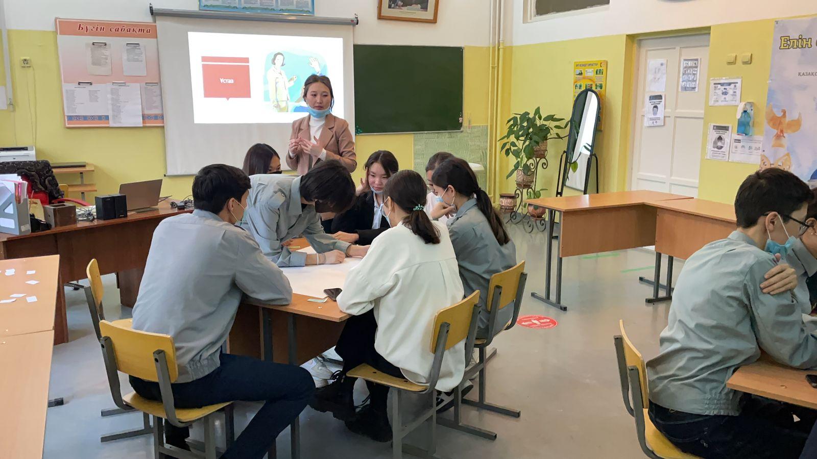 Бүгін мектебімізде “Өзін-өзі басқару” ұйымының мүшелері және 10 ә сынып оқушылары арасында “ Ұстаз бен оқушы мәдениеті” тақырыбында дөңгелек үстел өткізілді. Дөңгелек үстелдің мақсаты: Ұстаз бен оқушының қарым-қатынасын, мәдениетін нығайту