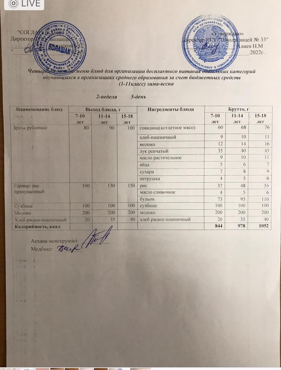 » Ас мәзірі 2 апта 5 күн