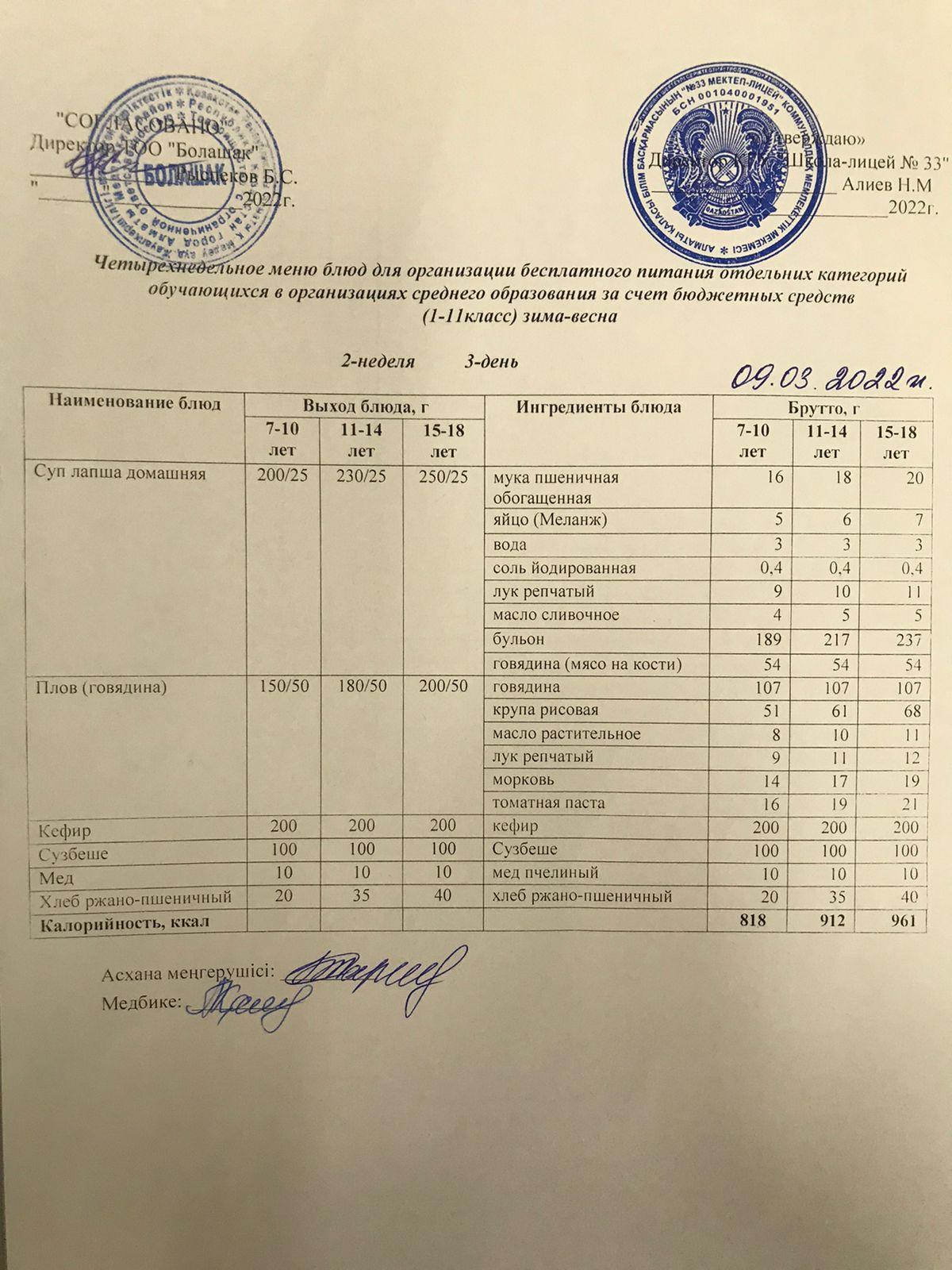 » Ас мәзірі 2-ші апта, 3-ші күн