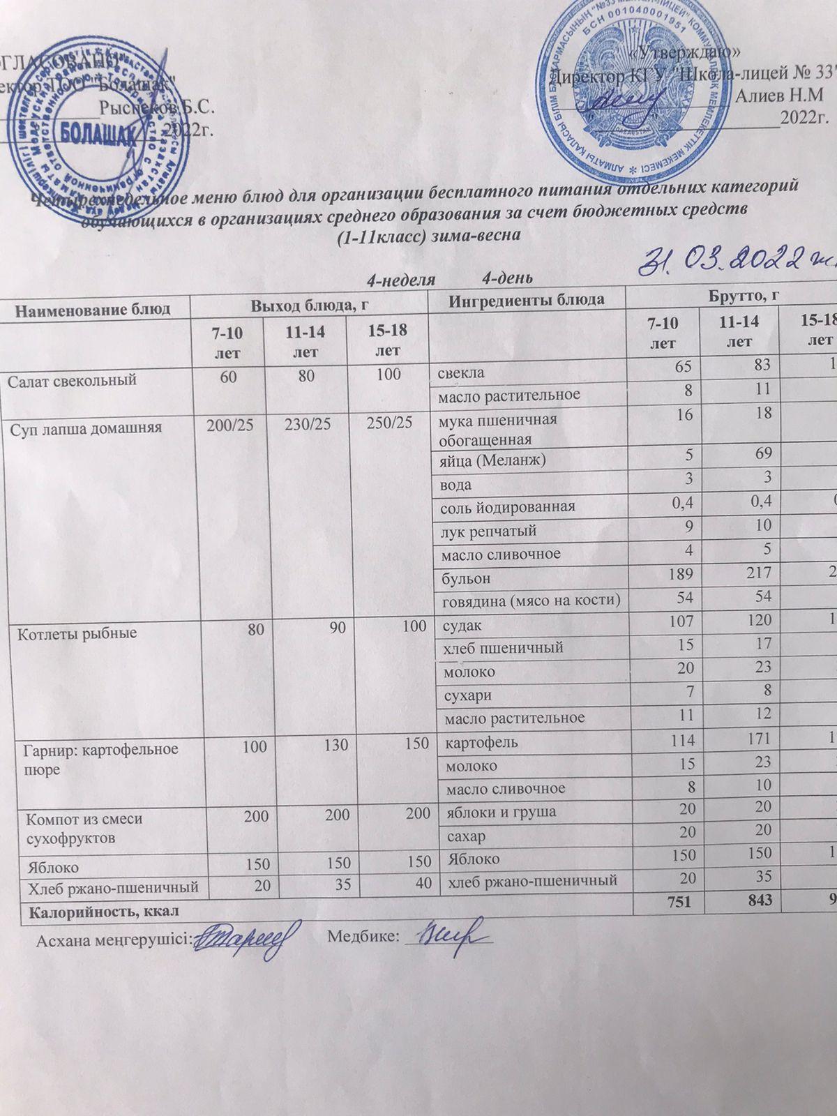 » Ас мәзірі 4-ші апта, 4-ші күн