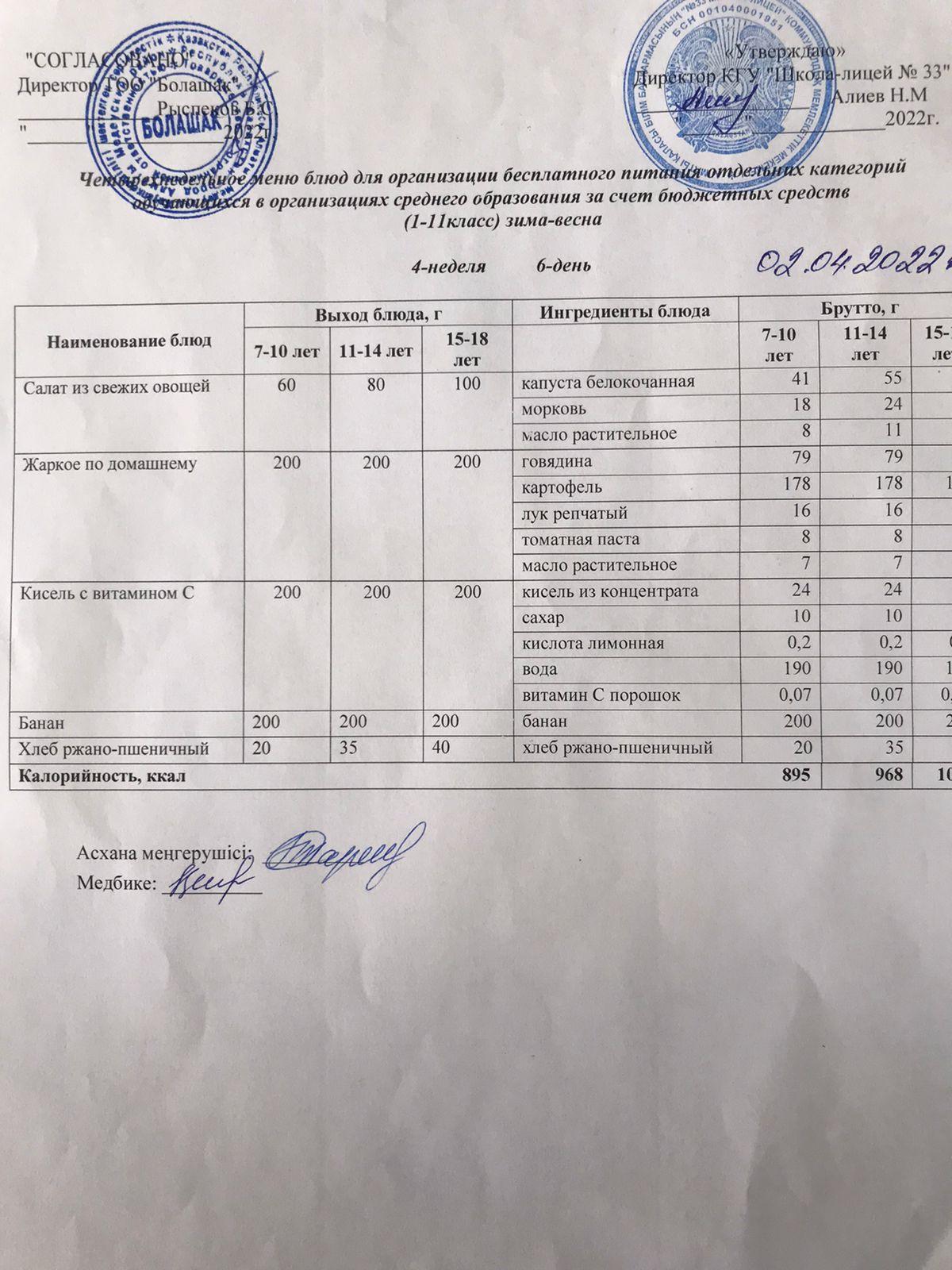 » Ас мәзірі 4-ші апта, 6-ші күн
