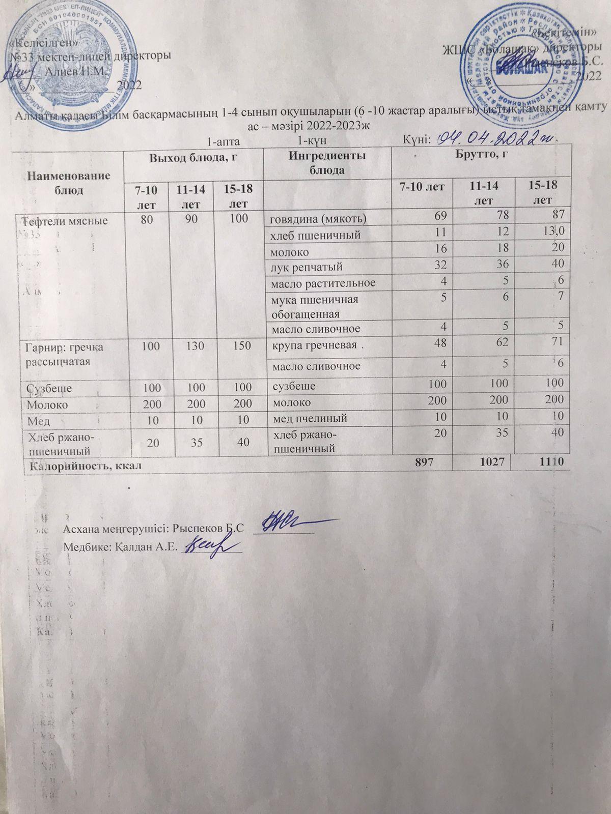 » Ас мәзірі 1-ші апта, 1-ші күн
