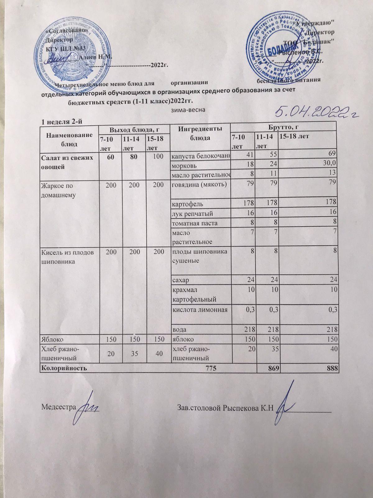 » Ас мәзірі 1-ші апта, 2-ші күн
