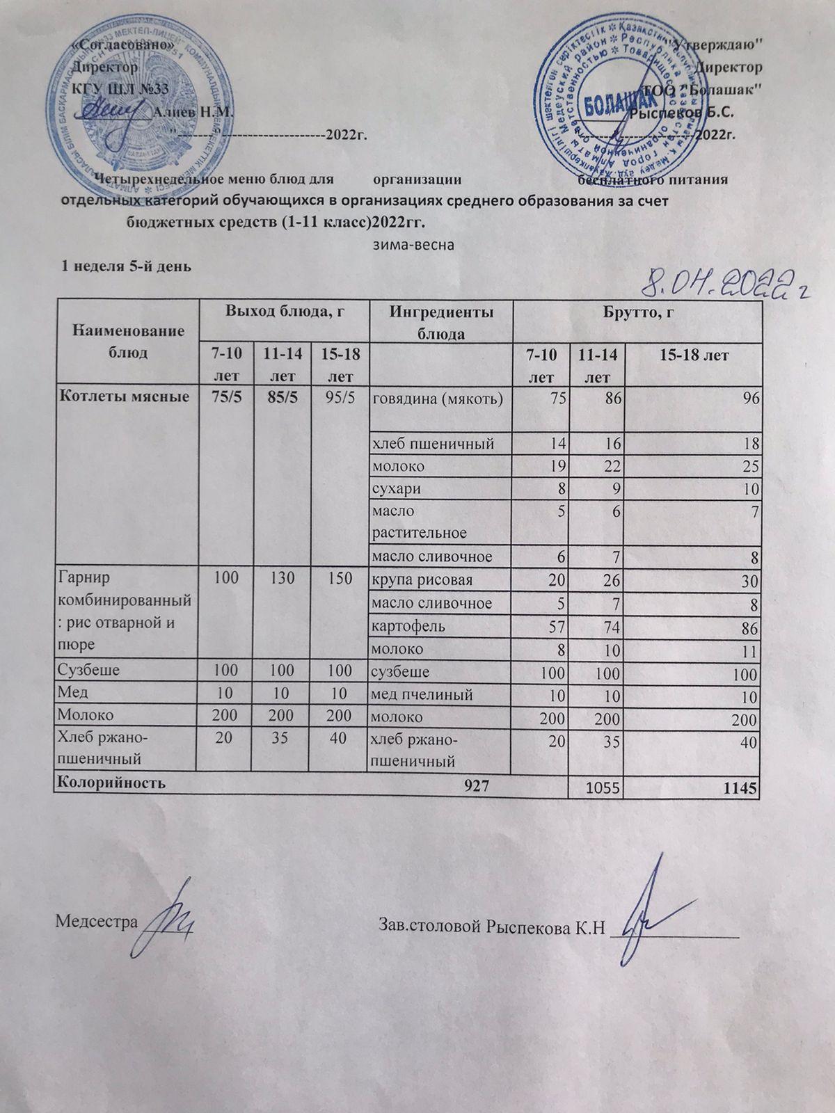» Ас мәзірі 1-ші апта, 5-ші күн