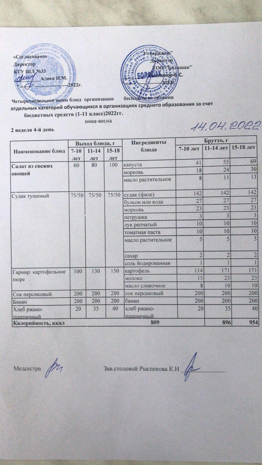 » Ас мәзірі 2-ші апта, 4-ші күн
