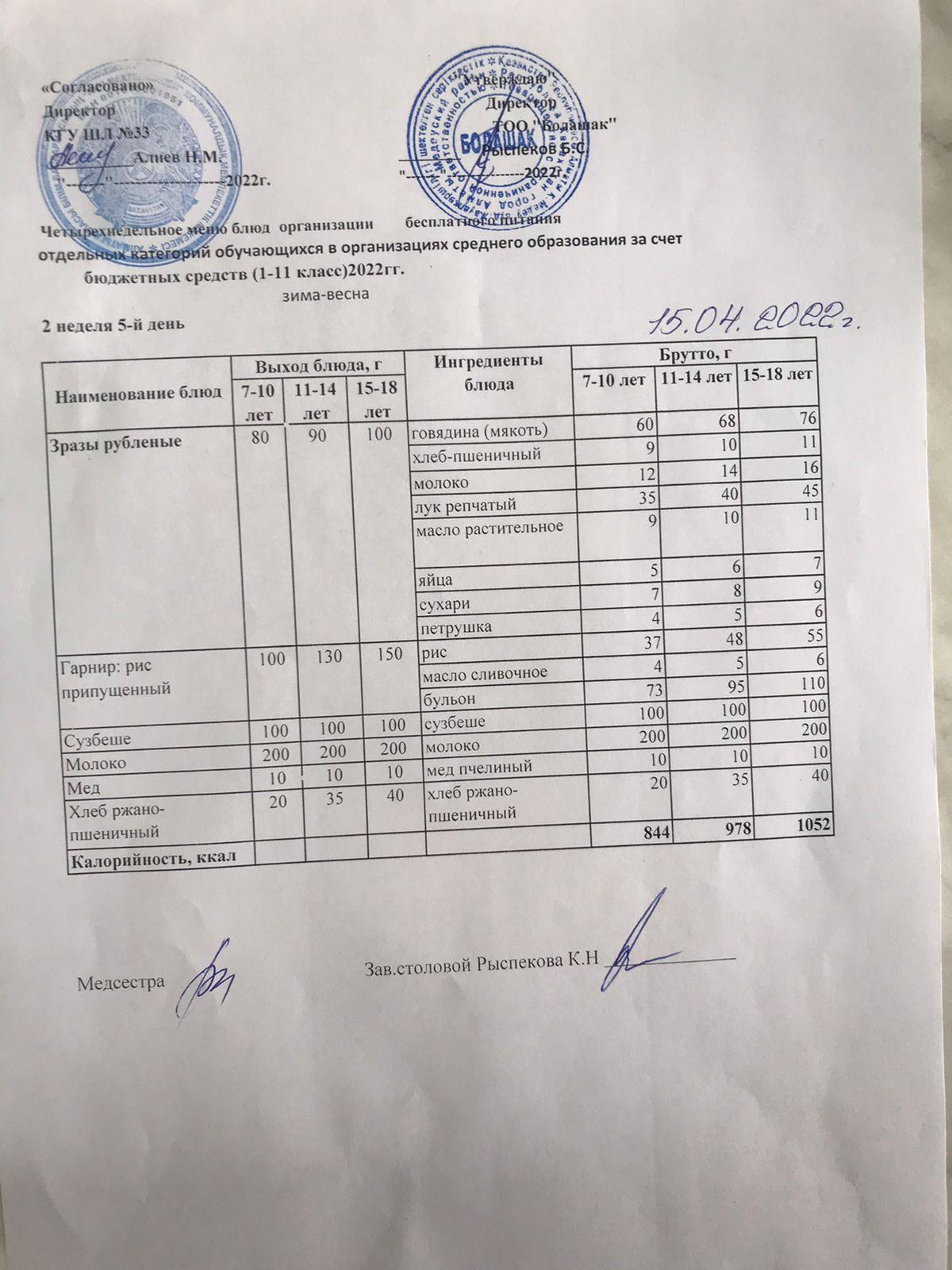 Ас мәзірі 1 апта 4 апта