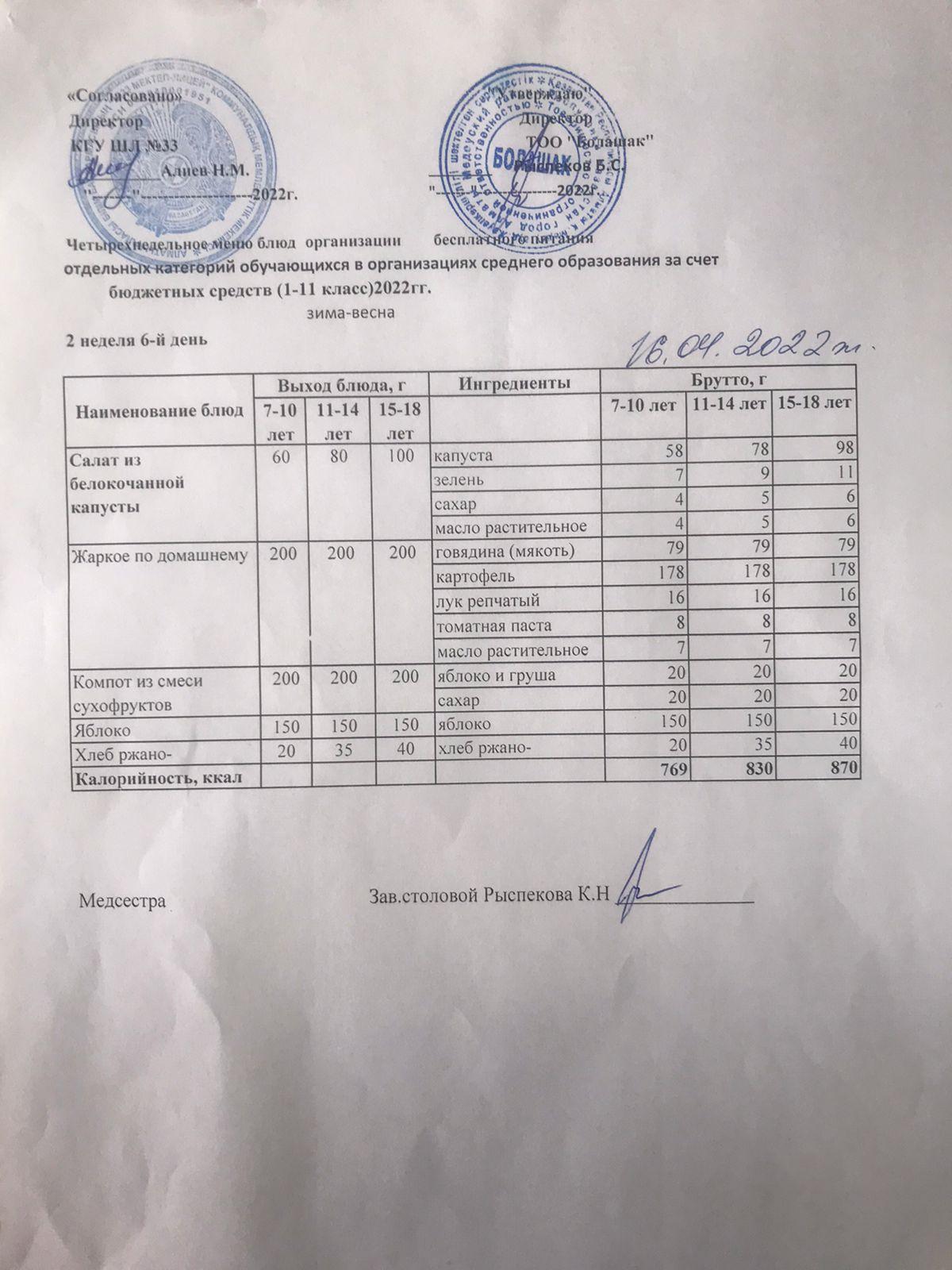 » Ас мәзірі 2-ші апта, 6-ші күн