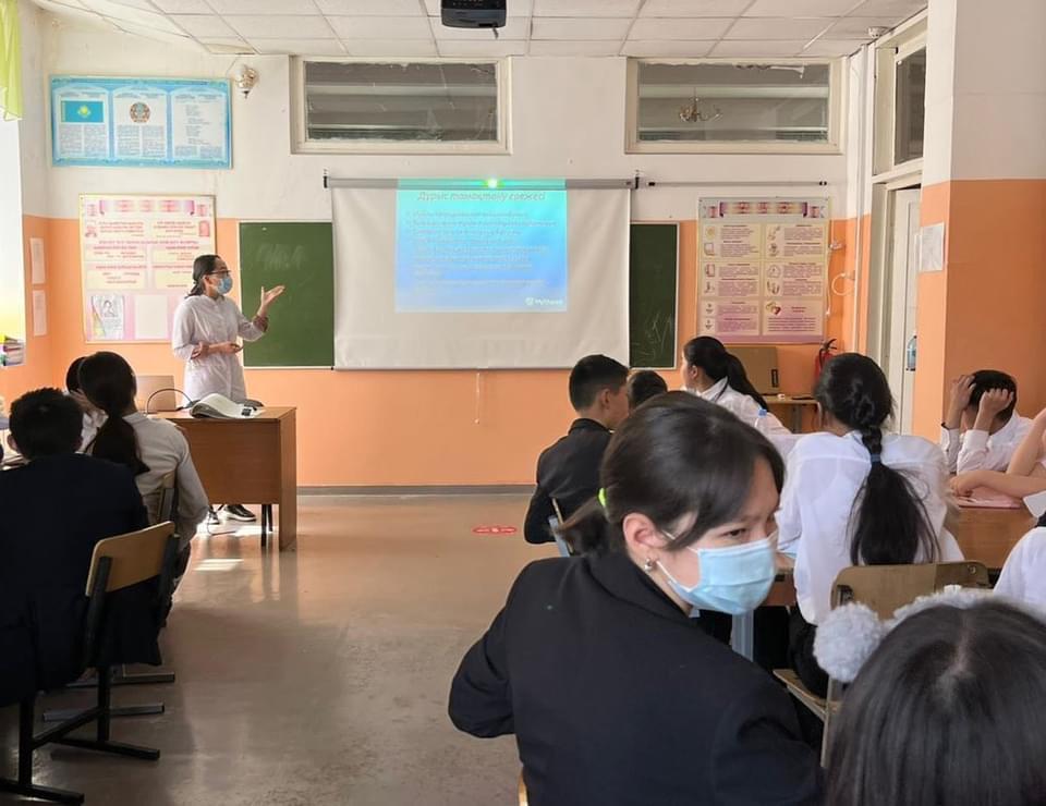 👩⚕️7 сәуір - Дүниежүзілік денсаулық сақтау күніне арналған іс-шаралар жоспарына сәйкес мектебіміздің медбикесі 7 ә сынып оқушыларымен "Дені сау ұрпақ-жарқын болашақ" тақырыбына ақпараттық-танымдық сағаттарын өткізді. Мақсаты:денсаулықтың адамның өмір сүруі үшін аса қажеттілігін,қоғамымыздың салауаттылығы әр адамның денсаулығына байланысты екендігін түсіндіру. Ұқыпты да, жинақы, әдемі болуға тәрбиелеу.
