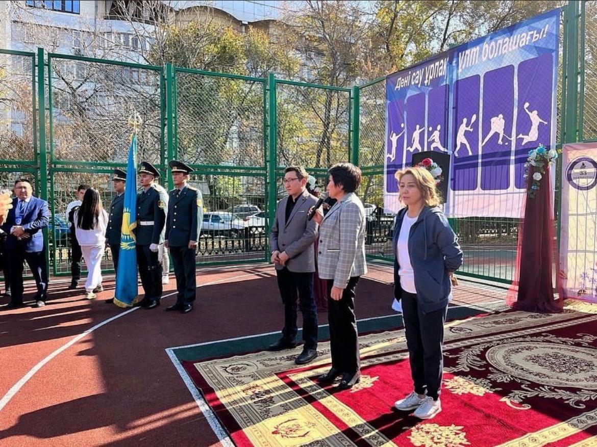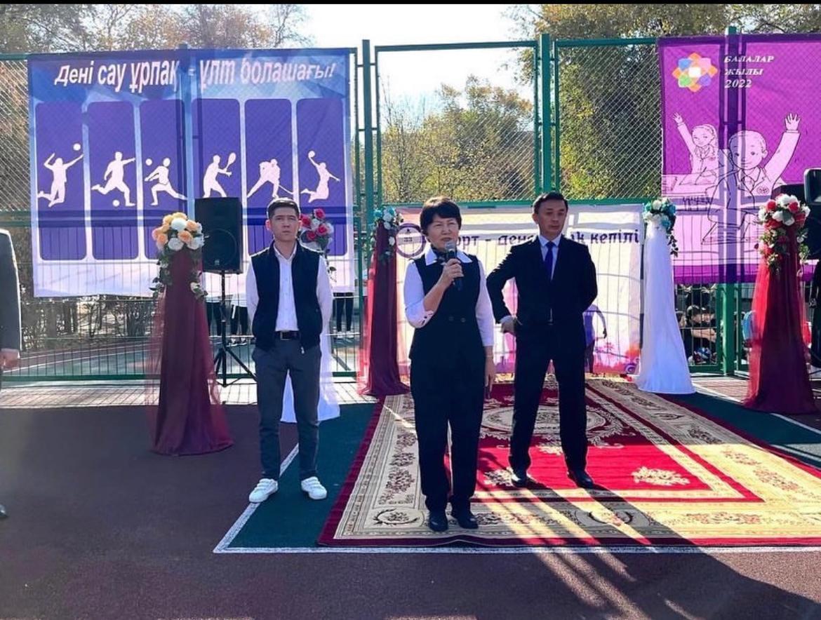 Алматы қаласы Білім басқармасы «Қалалық дене шынықтыру және спорт оқу тәжірибелік орталығы» директоры Елемесов Бахтияр Асқарұлы спорт алаңын ашып, мектеп оқушыларына арнап 5 спорттық доп сыйға тартты.