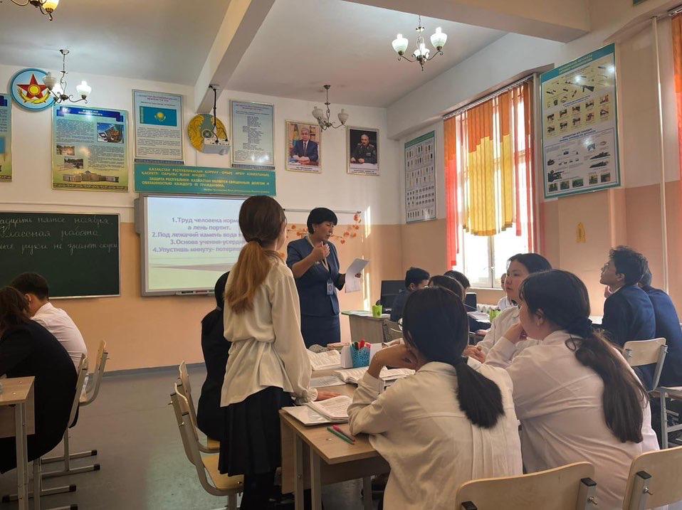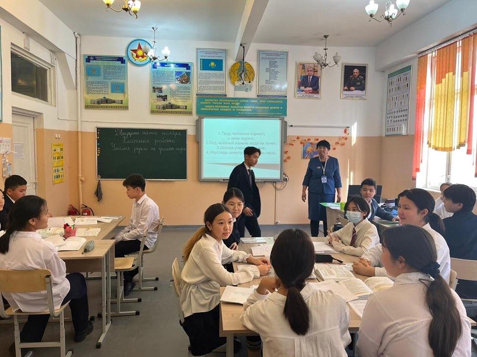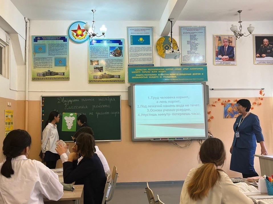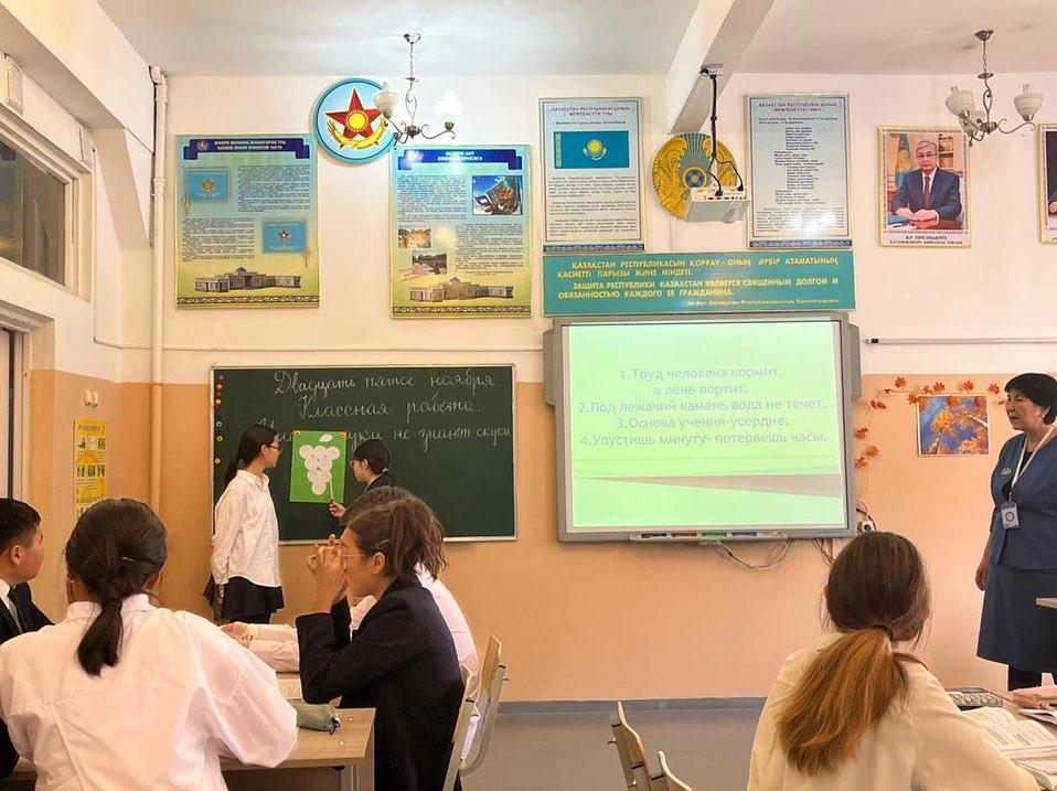 Семинардың үшінші бөлімі "Ашық сабақтар аллеясы". “Умелые руки не знают скуки” тақырыбында 8 ”А” сынып оқушыларына Мусабекова С.Т ашық сабақ өткізді.