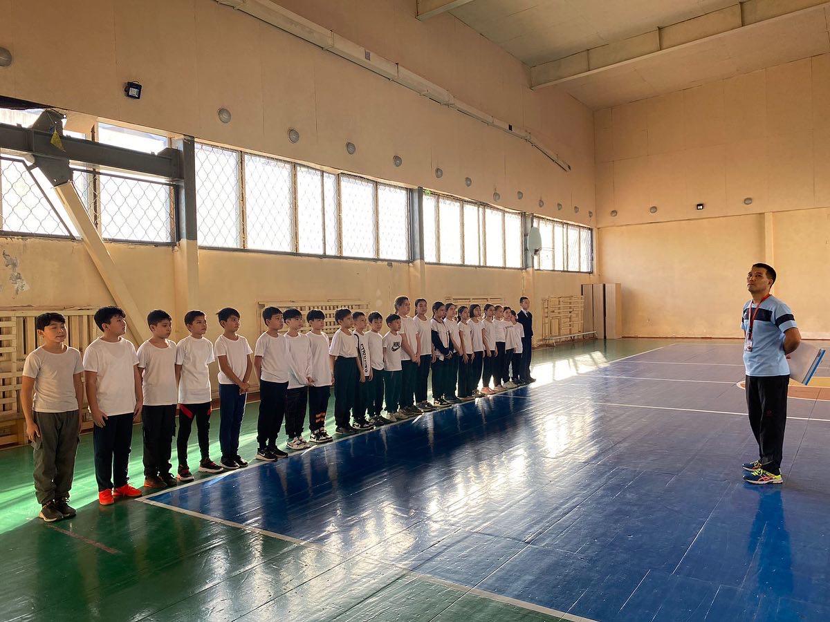 Семинардың үшінші бөлімі "Ашық сабақтар аллеясы". “Акробатикалық жаттығулар” тақырыбында 5 ”Б” сынып оқушыларына Қожанов А.С. денешынықтыру пәнінен ашық сабақ өткізді.