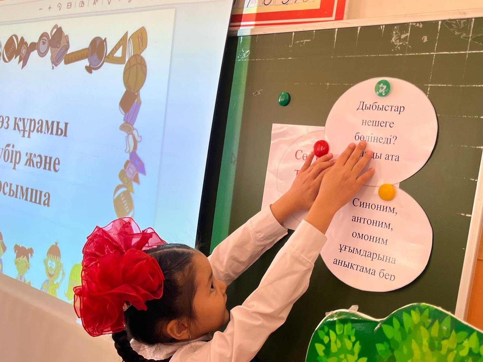 33.alschool.kz » Ақпарат » Бүгін 2 “Б” сыныбында қазақ тілі пәнінен Қойайдарова Ү. А. ашық сабақ өтті. Сабақтың тақырыбы: “Түбір мен қосымша”. Сабақ жоғары деңгейде өтілді.