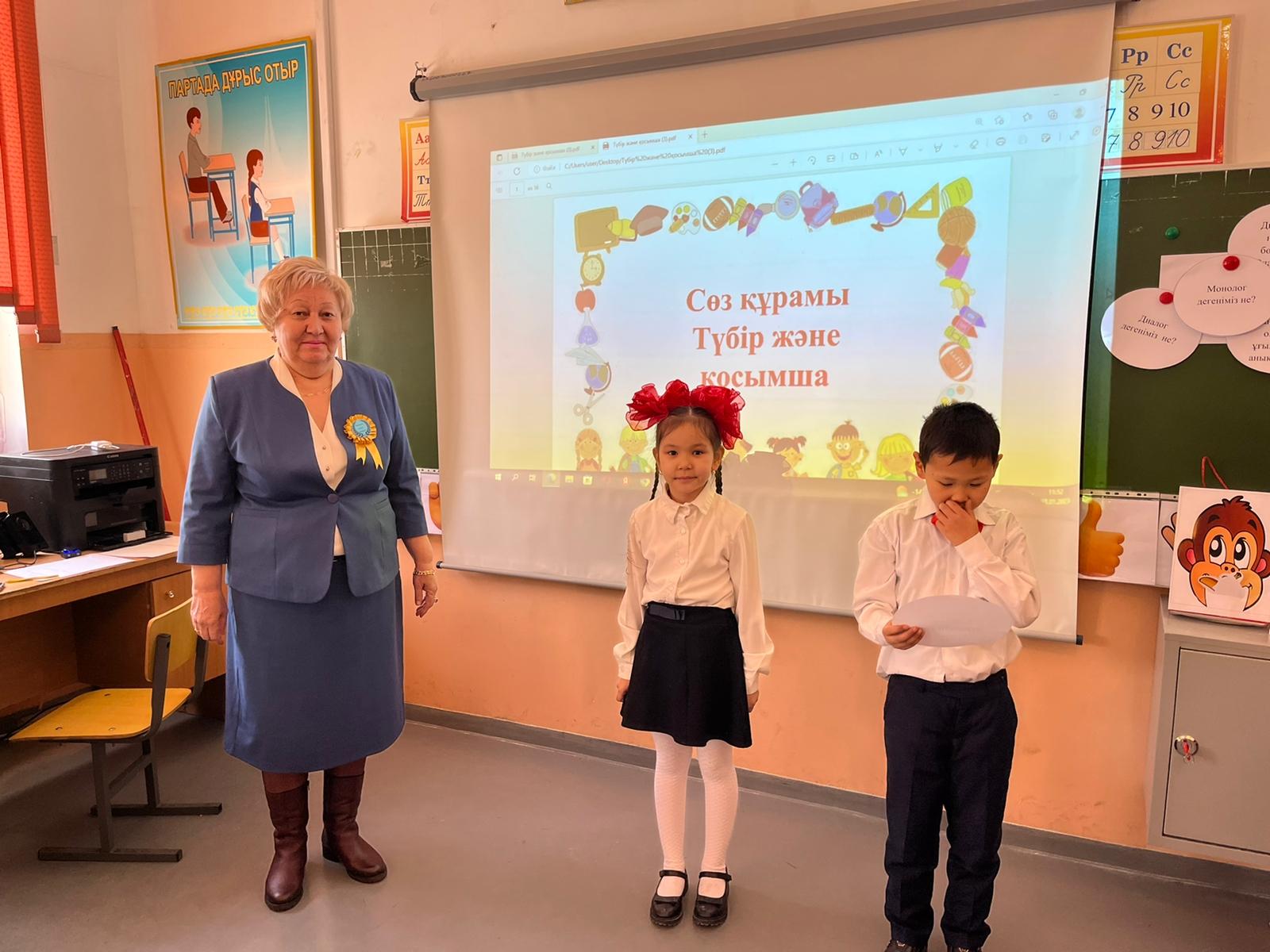 Бүгін 2 “Б” сыныбында қазақ тілі пәнінен Қойайдарова Ү. А. ашық сабақ өтті. Сабақтың тақырыбы: “Түбір мен қосымша”. Сабақ жоғары деңгейде өтілді. Мұғалім өзінің тәжірибиелі ұстаз екендігін көрсетті. Балалар белсенді сабақта өз білімдерін көрсете білді.