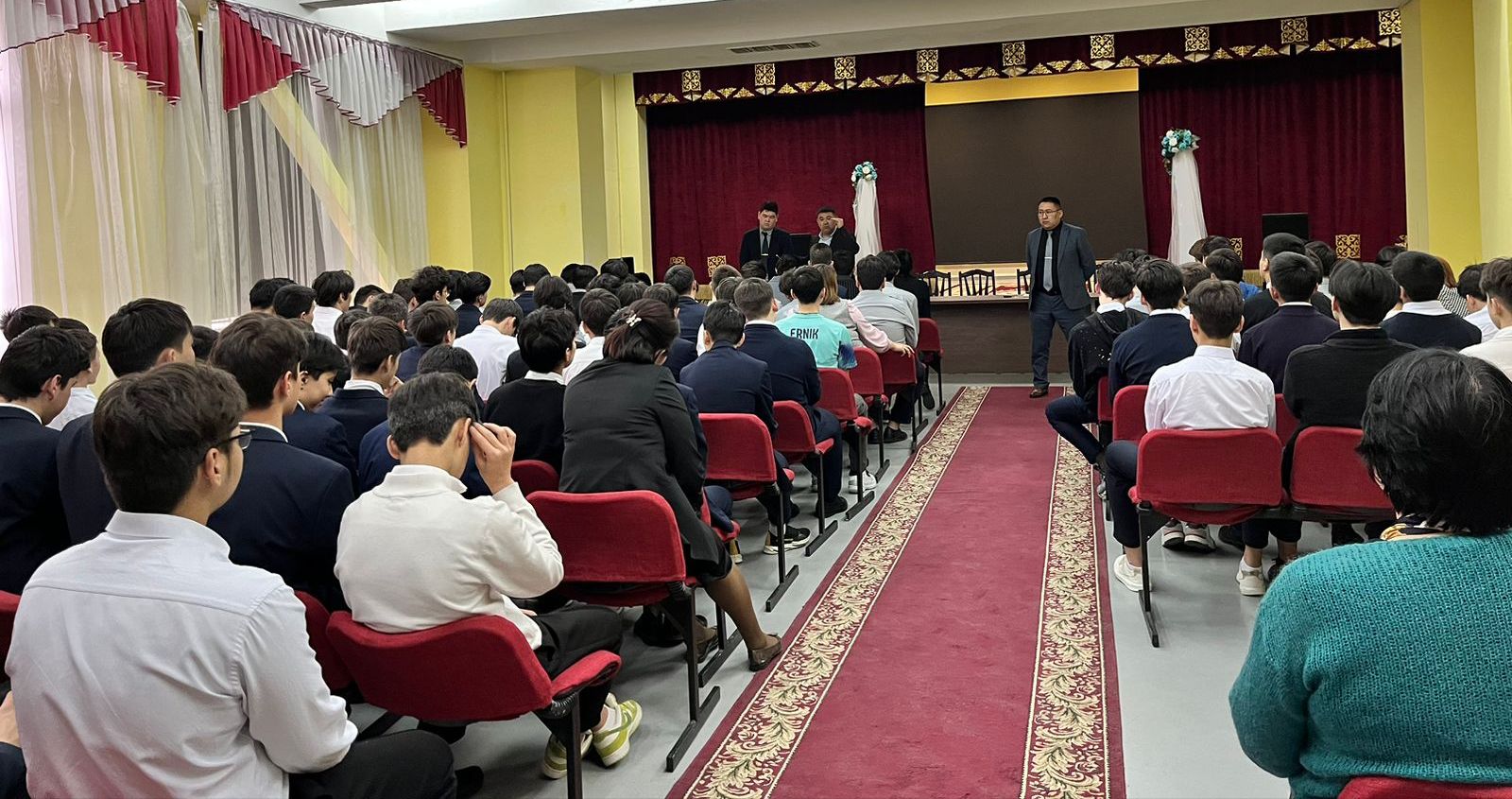 Бүгін мектебімізде “Ұл -тәрбиесі ұлт - тәрбиесі” тақырыбында 8-11 сыныптың ұлдары және сынып жетекшілеріне мектеп директоры және мектеп психологымен бірге жиналыс өткізілді. Жиналыстың мақсаты: Оқушылар арасындағы зиянды әдеттердің алдын алу, мәдени, спорттық іс -шаарларға тарта отырып, Қазақстанның болашағы жастар екенін түсіндіру.