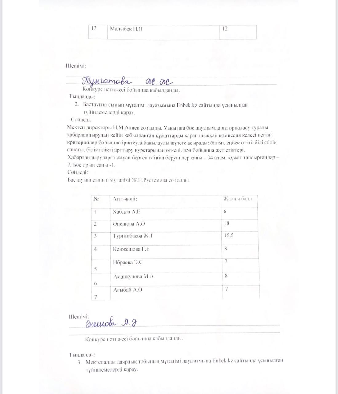 4) Педагогтердің үлгілік біліктілік сипаттамаларымен бекітілген лауазымға қойылатын біліктілік талаптарына сәйкес білімі туралы құжаттардың көшірмелері(Білімі туралы диплом күндізгі бөлімді бітірген математика пәні мұғалімі, Біліктілігі/Санаты туралы куәлігі, алдыңғы жұмыс орнынан ұсыныс хат, кәсіби жетістіктердің көрсеткіштері оқушылары мен өзінің жетістіктері, авторлық жұмыстар және жарияланымдары, курстық дайындық сертификаттары);