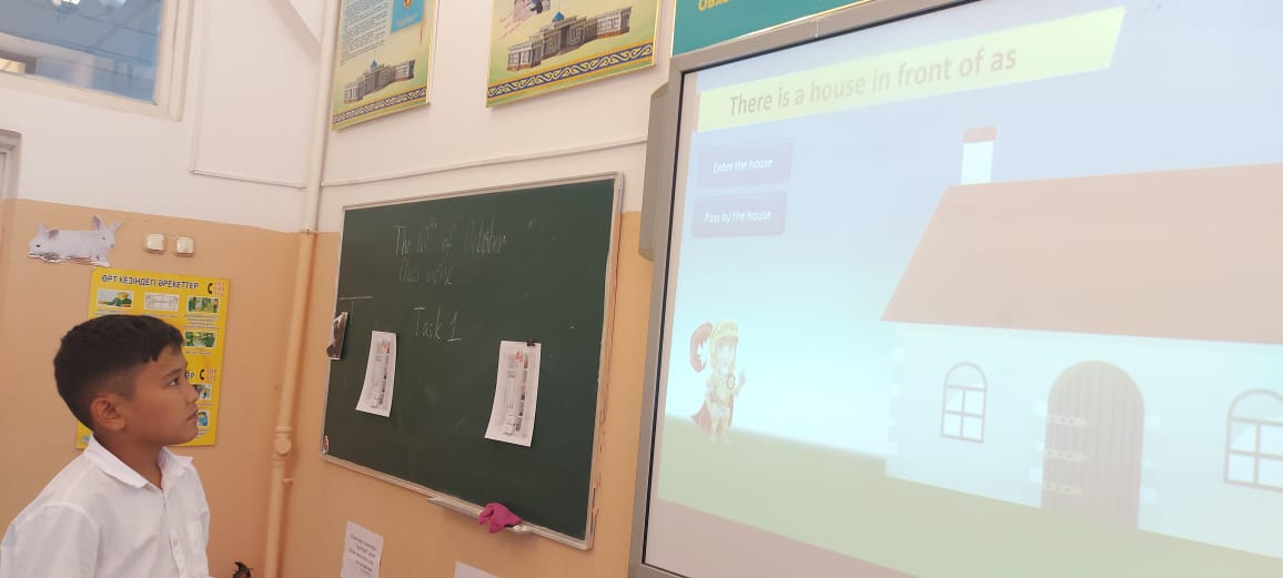 Сабақтың мақсаты: Demonstrative Pronouns атты жаңа грамматикасымен танысып, жануарлар тақырыбымен байланыстыра отырып тапсырмалар орындау. Сабақ "Story telling" әдістеме арқылы сабақ өтілді. Сонымен қатар сабақ барысында тіл үйренудегі төрт дағдылар (айтылым, оқылым, тыңдалым және жазылым) қамтылды.