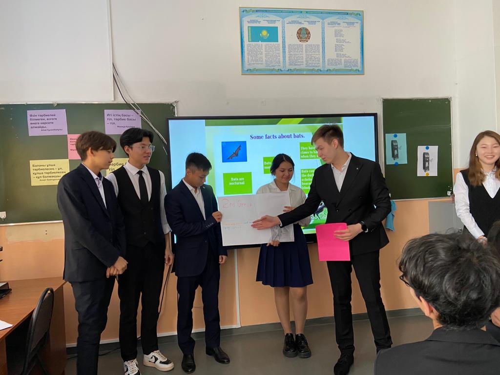 Гуманитарлық бірлестік әдістемелгінің он күндігіне орай 09.10.2023 ж 11 "А" сыныбымен ағылшын тілінен «The animals world». (Bats)" тақырыбында ашық сабақ өтілді. Пән мұғалімі: Тунгатова Ж.Ж. Сабақтың мақсаты: Оқушылар жаңа тақырып бойынша жарғанаттар туралы мәліметтерді біліп, жаңа сөздермен танысып оларға тәжірибеде пайдалануға үйрету. Сабақ барысында «Insert » және «Кубизм» әдістерін қолданып. Жеке, жұптық және топтық жұмыстарға арналған тапсырмалар орындалды. Тіл үйренудегі төрт бірдей дағды да (Listening ,Reading, Writing, Speaking) қамтылды.