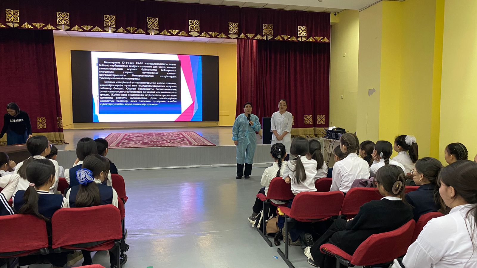 3. Мектеп психологы қыз балалардың өзін-өзі бағалауын, өзіне сенімділігін арттыру мен өзінің жеке қайталанбайтын тұлға екендігін ұғындыру бойынша әңгіме жүргізді. «Мен...», «Оның есесіне...» аяқталмаған сөйлемдер арқылы ойындар, сонымен қатар, «Менің жан-дүниемнің гүл-бағы!» атты релаксация сәтін өткізді.
