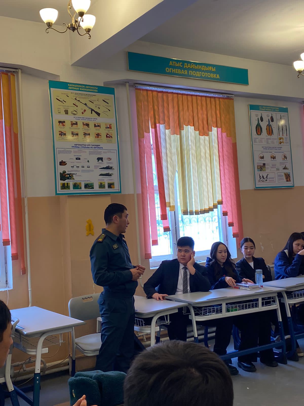 10- сынып оқушылары мен Абай атындағы ҚазҰПУ-дің студенттері арасында АӘ және ТД пәнінің мұғалімі Е.Б Джангазиевтің ұйымдастыруымен Ұлы Отан соғысының ардагері, Кеңес Одағының батыры, Халық қаһарманы, тәуелсіз Қазақстанның тұңғыш Қорғаныс министрі,