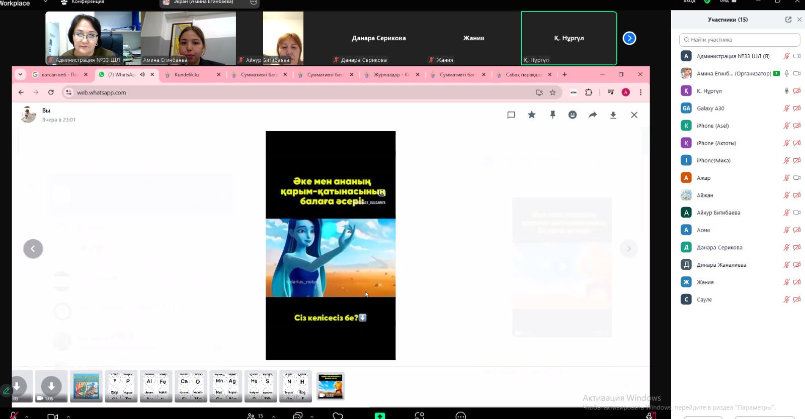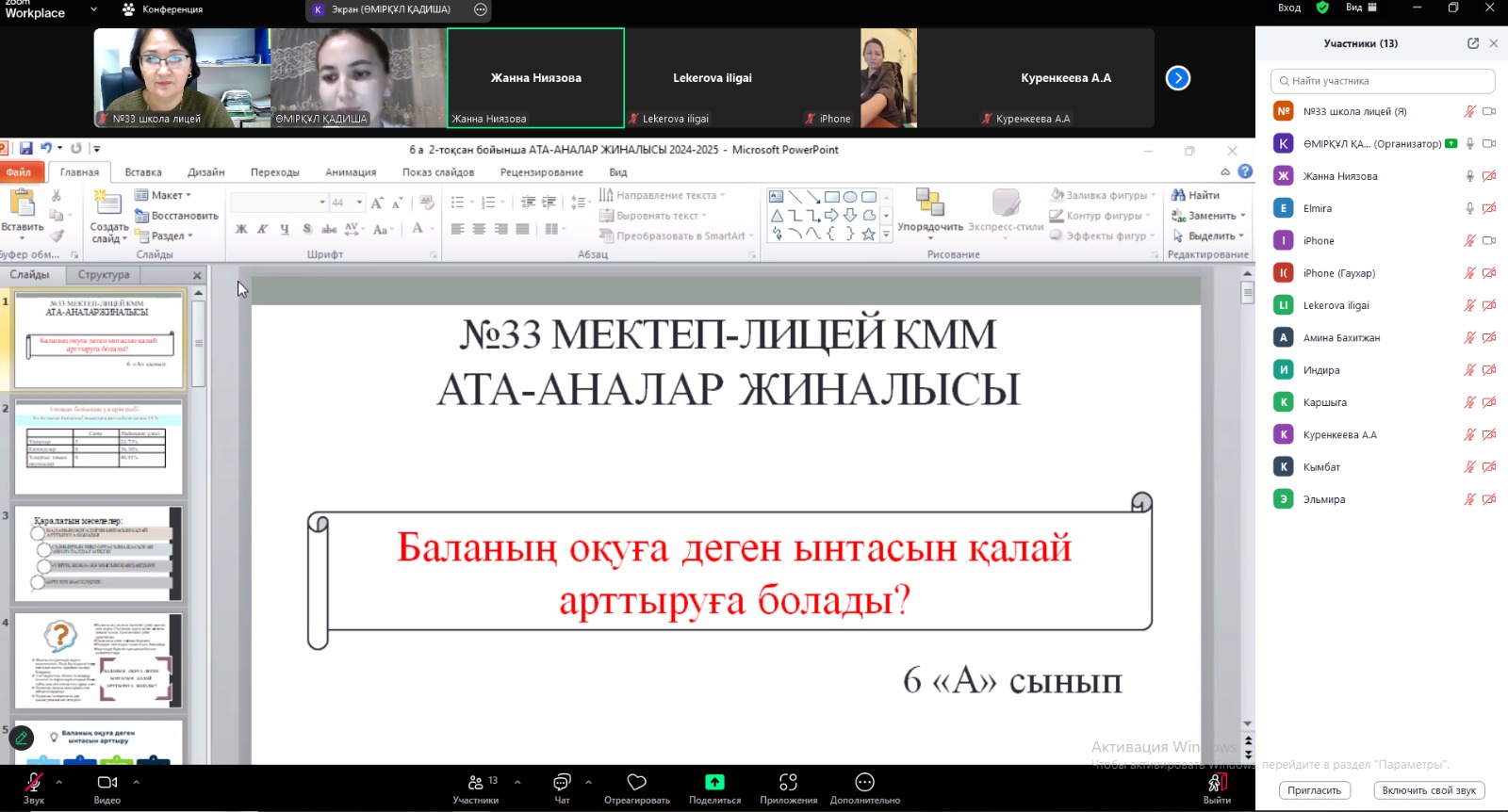 “Біртұтас тәрбие” бағдарламасы негізінде жоспарға сәйкес қарашаның 15-і күні мектебімізде 5-11 сынып аралығында ата-аналар жиналысы өтті.