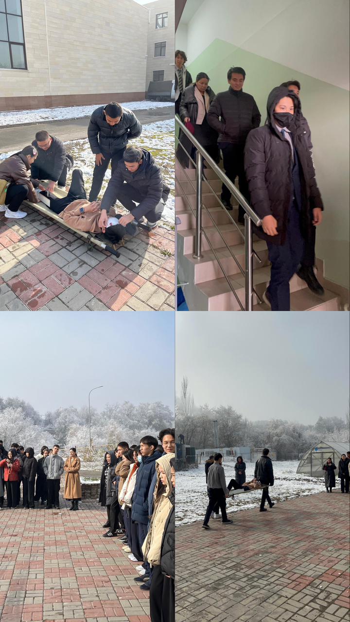 Бүгін мектебімізде 15.11. 2024 ж мектепішілік сейсможаттығу өткізілді. Сейсможаттығу нәтижесінде оқушылар мен мұғалімдер және мектеп қызметкерлері өз орындарын тастап қауіпсіз орынға көшірілді. Сонымен қоса оқушылар мен мұғалімдерге қандай керекті құжаттар мен керекті заттарды алу керек туралы түсініктеме жұмыстары жүргізілді. 10-11 сынып оқушылары және АӘ және ТД пән мұғалімі Джангазиев Е.Б алғашқы медициналық көмек қалай жасалатыны туралы көрсетіп түсіндірме жұмыстарын жүргізді. Сейсможаттығу барысында ешқандай оқыс оқиға орын алмады.