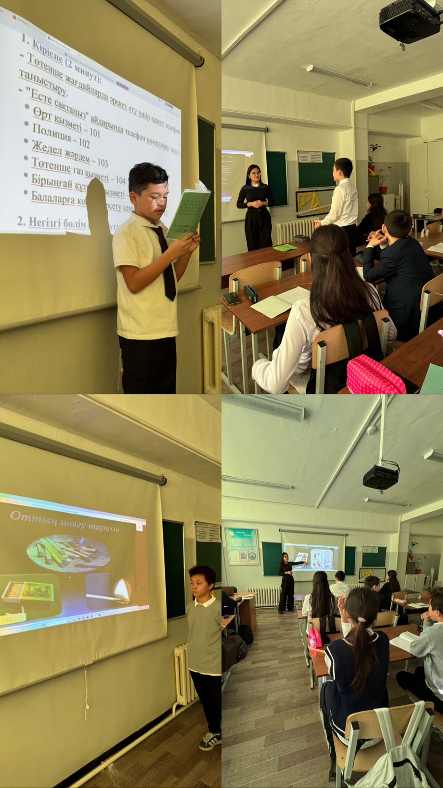 Сабақ барысында оқушылар 101 (өрт сөндіру қызметі), 102 (полиция), 103 (жедел жәрдем) және 112 (төтенше жағдайлар қызметі) сияқты шұғыл қызметтердің байланыс нөмірлерімен танысты. Сондай-ақ, сенім телефондары туралы ақпарат беріліп, олардың қиын жағдайға тап болған адамдарға қалай көмектесетіні түсіндірілді