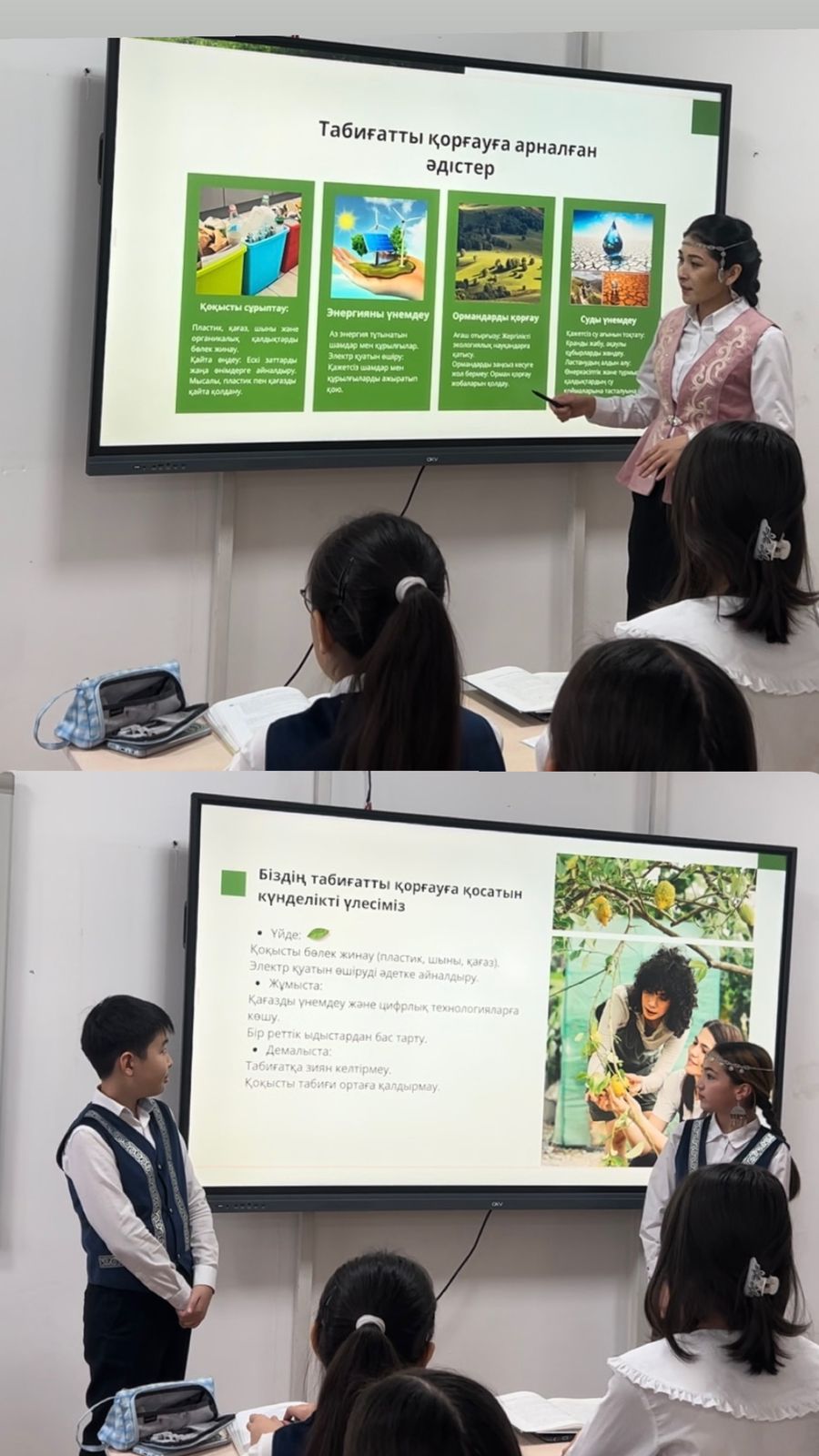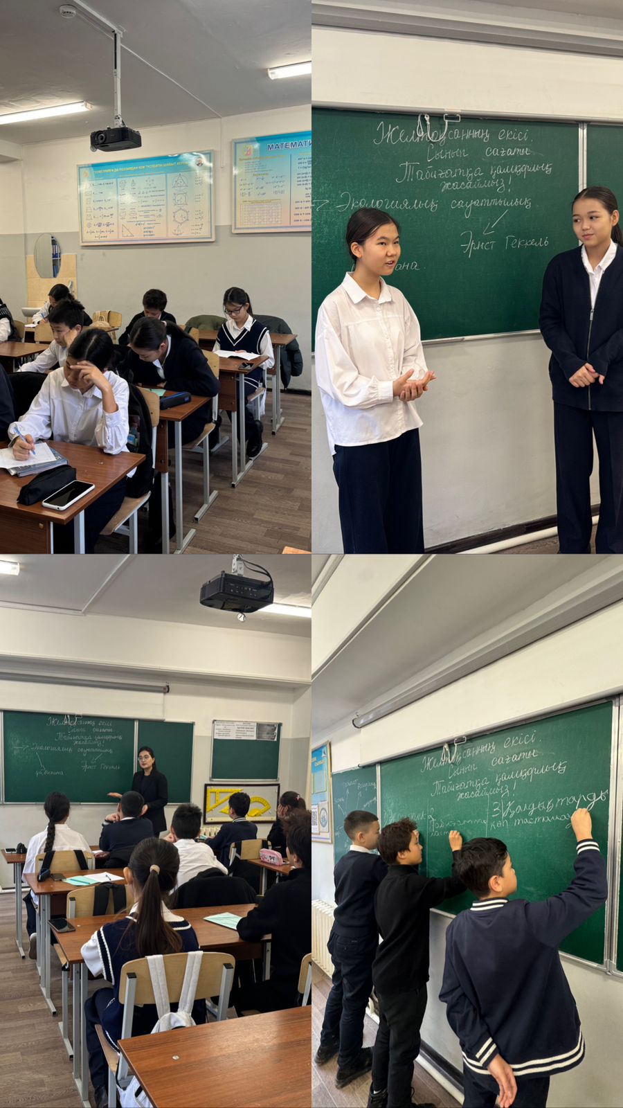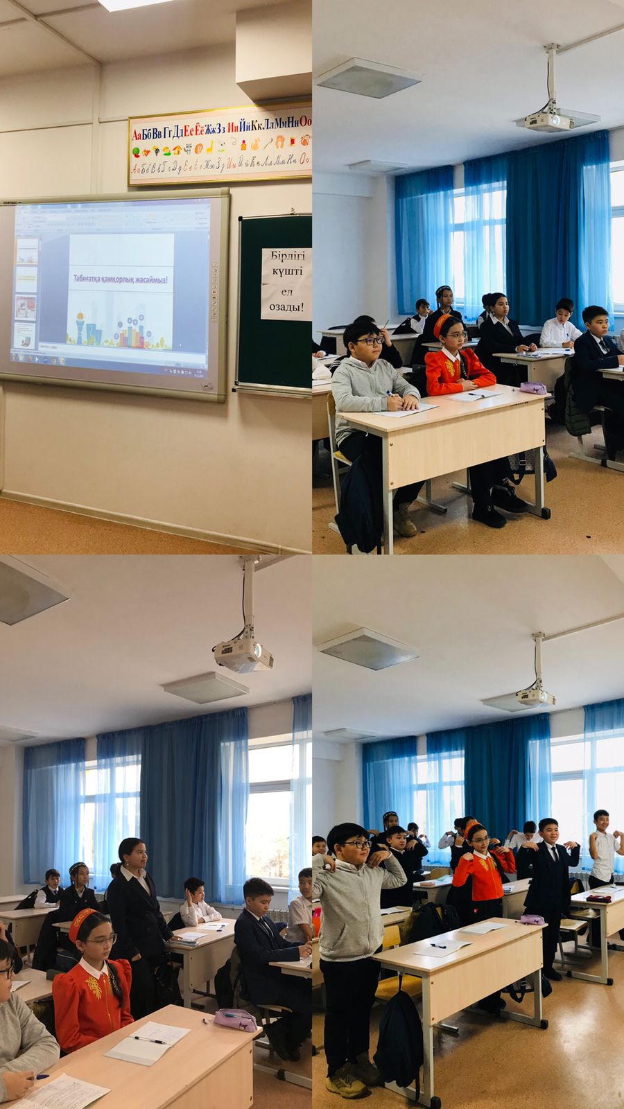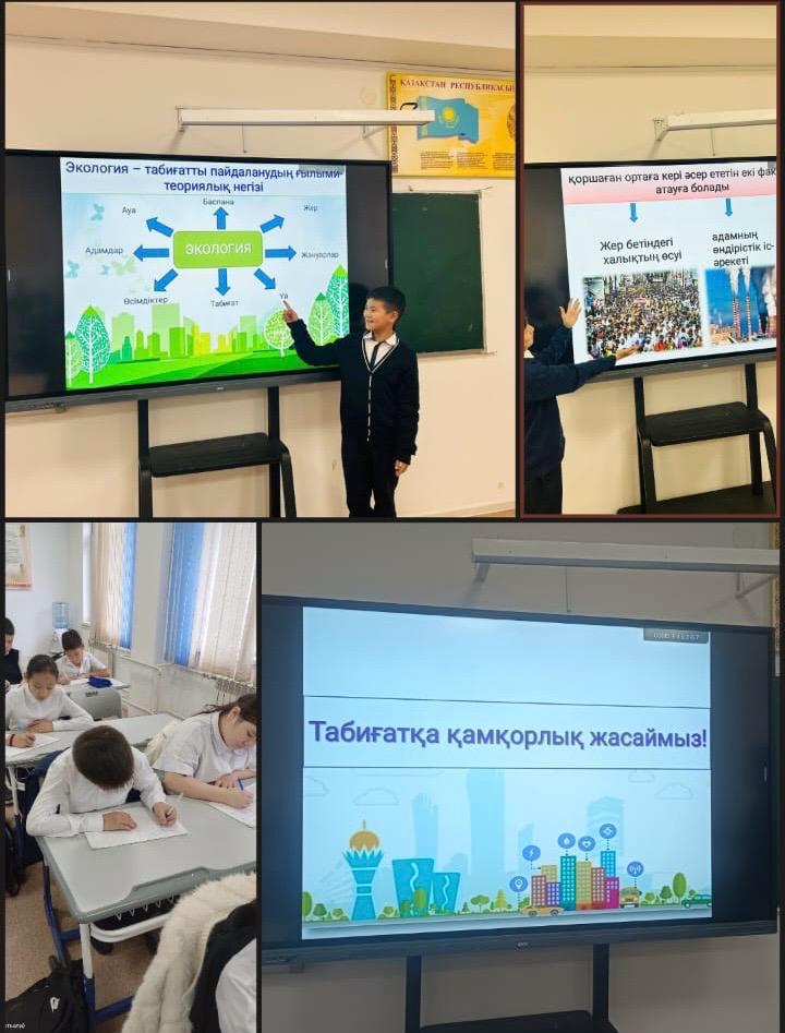 5-8 сыныптарға “Табиғатқа қамқорлық жасаймыз” тақырыбында сынып сағаты өтілді. Табиғат байлықтарын бағалауға, сақтауға, табиғатты аялай білуге, қамқорлықпен қарай білуге тәрбиелеу басты мақсат болды. 9-11 сыныптарға “Біздің күшіміз бірлікте” тақырыбындағы сынып сағатында “Бірлік” ұғымының адамгершілік құндылығы ретінде мәнін ашу және «достық» адамгершілік құндылығы туралы түсініктерін кеңейту мақсатында жұмыстар жүргізілді
