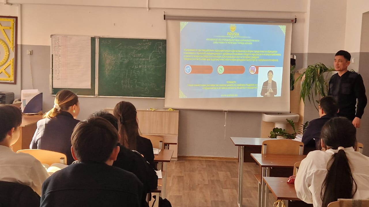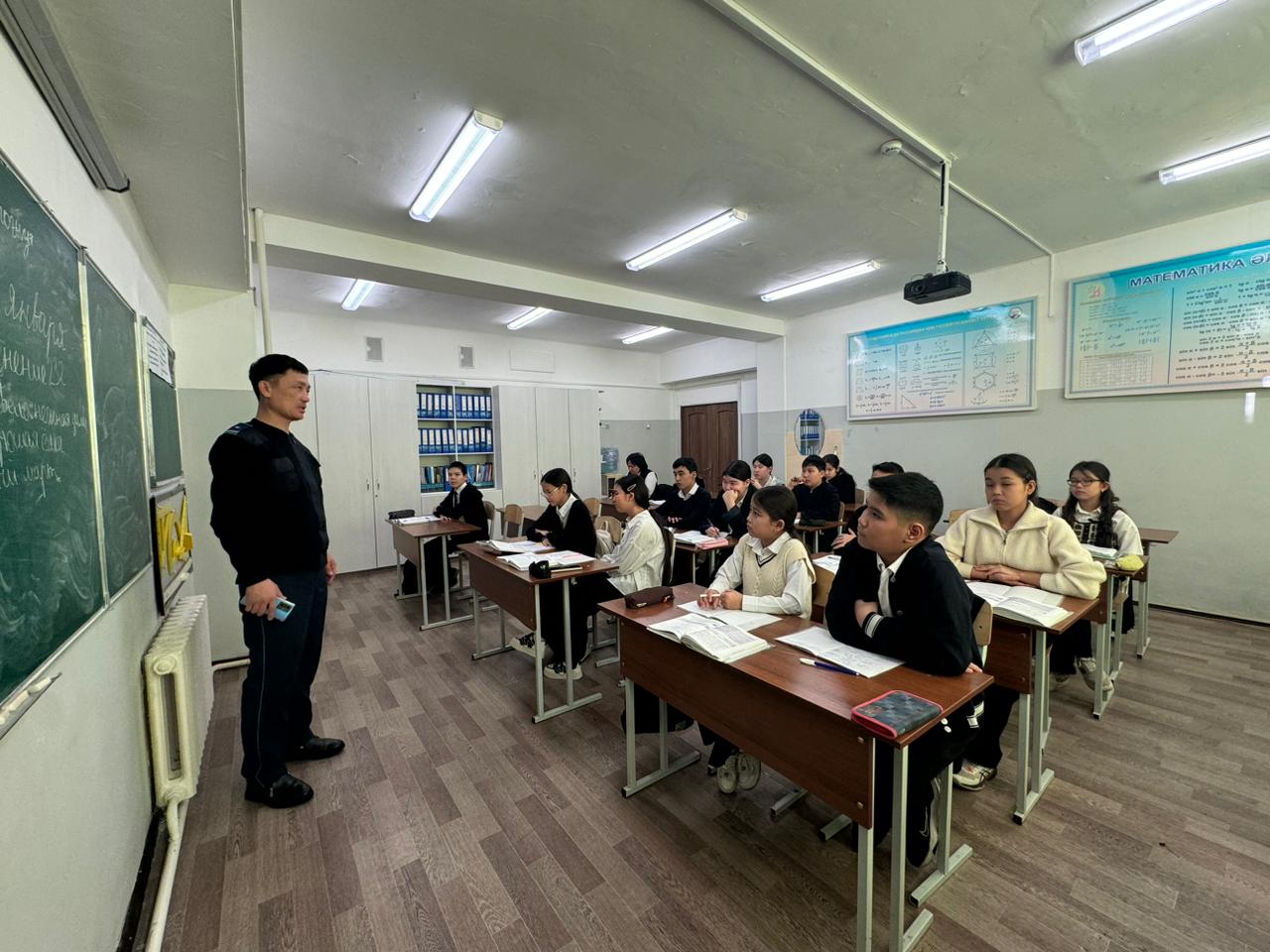 09 январь 2025 0 1 2 3 4 5 7-8 сынып оқушыларына мектеп инспекторы полиция майоры Махимов Нұрбақыт “Мектеп тәртібі”, “Жол қауіпсіздігі”, “Жолда жүру ережелері” тақырыбында түсіндіру жұмыстарын жүргізіп, кешкі мезгілде жүруге болмайтындығын баса ескертті. 09.01 күні мектебіміздің 7-8 сынып оқушыларына мектеп инспекторы полиция майоры Махимов Нұрбақыт “Мектеп тәртібі”, “Жол қауіпсіздігі”, “Жолда жүру ережелері” тақырыбында түсіндіру жұмыстарын жүргізіп, кешкі мезгілде жүруге болмайтындығын баса ескертті.