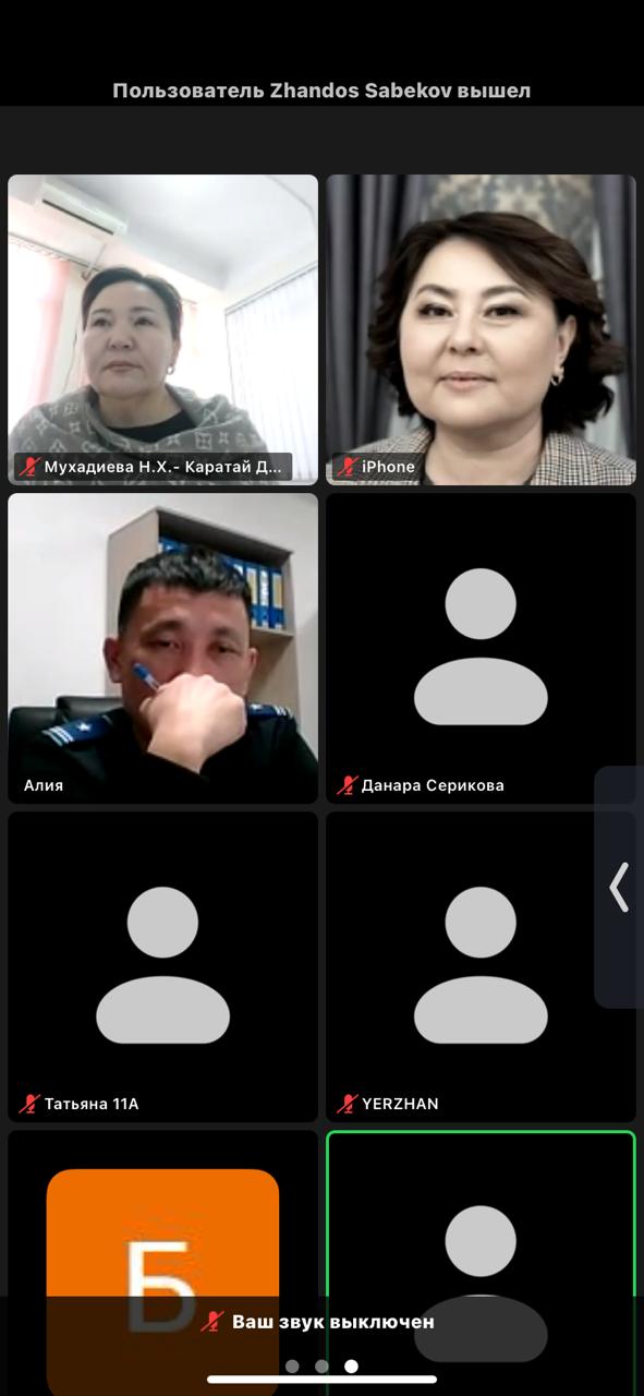 23.01.2025ж. күні мектеп психологы мен мектеп инспекторының бірлескен 5-11 сыныптардың ата-аналарына мектепішілік (онлайн) жиналыс өткізілді. Мақсаты: жасөспірімдер арасындағы суицидтің және құқықбұзушылықтың алдын алу.