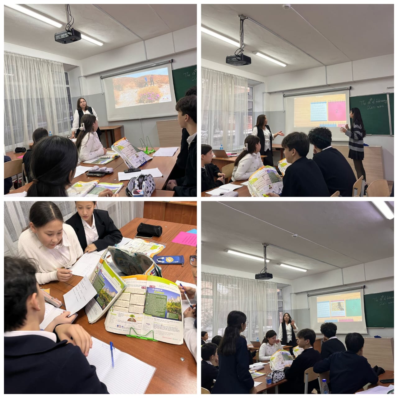 "Тіл - адамның тілмашы" атты қоғамдық - гуманитарлық кафедрасының онкүндігінің аясында ағылшын тілі пәні мұғалімі Смагулова Ж. Р. 8 "Б" сыныбына "Places of Natural Beauty" тақырыбында ашық сабақ өтті. Сабақтың мақсаты оқушыларға табиғаттың маңызы мен сулудығын дәріптей отырып, табиғатты аялауға баулу. Сабақ барысында түрлі топтық, жұптық және жеке тапсырмалар орындалып, тіл меңгерудегі жазылым, айтылым, тыңдалым және оқылым дағдылары қамтылды.
