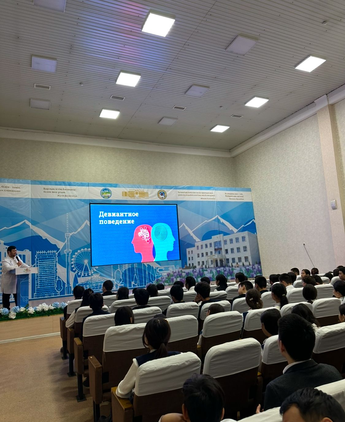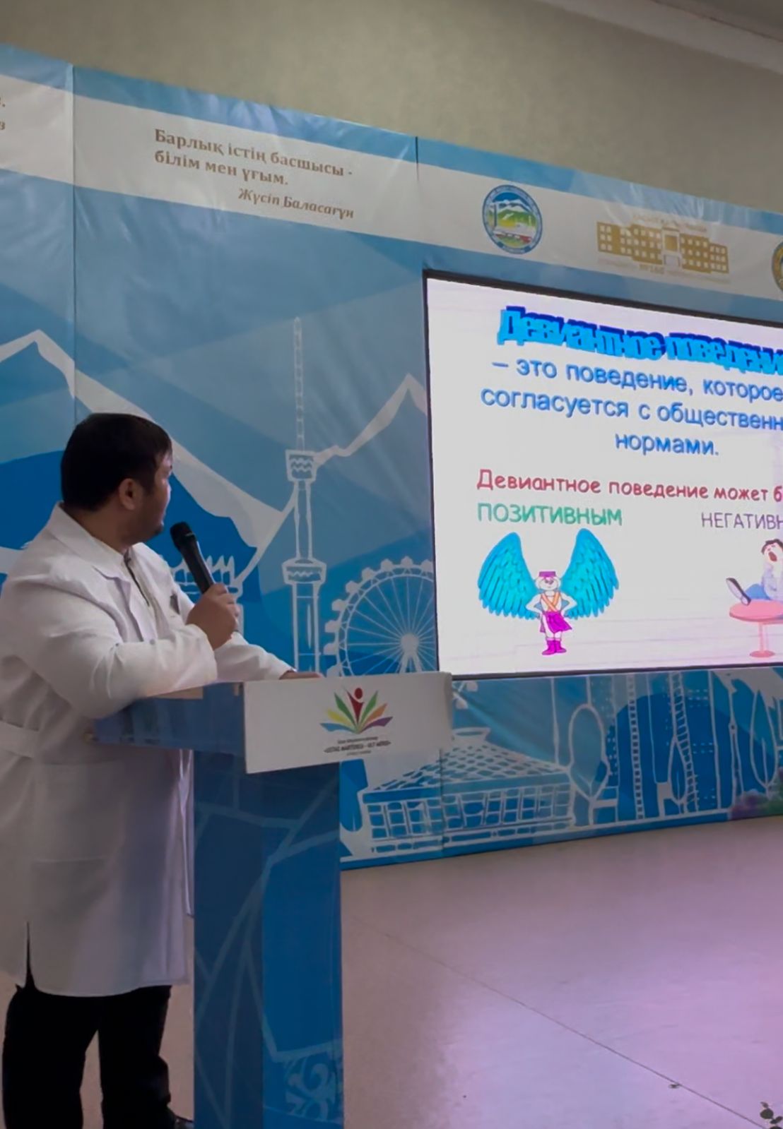№1 қалалық балалар емханасының психолог дәргері Омирзаков Мирас және мектеп мейірбикесі Айтжан А.Б. және ДТІЖО Амирханова А.Т, Нышанова Ғ.Е қатысуымен 6-9 сынып оқушыларына “Жасөспірімдердің девиантты мінез-құлқы” тақырыбында дәріс оқылды. Іс-шара барысында девиантты мінез-құлық мысалдары, оның жасөспірімдер мен қоғамға әсері талқыланды.