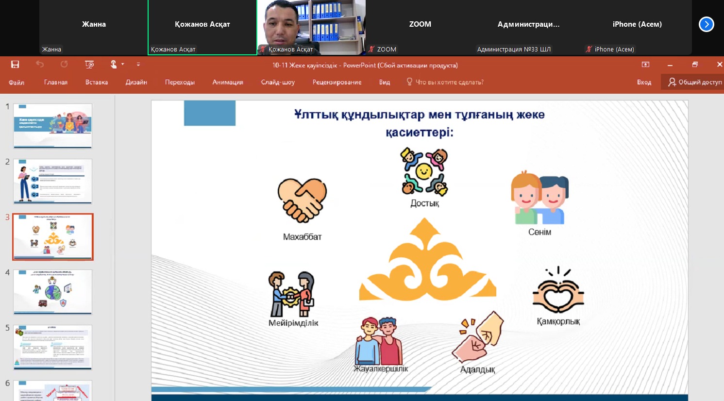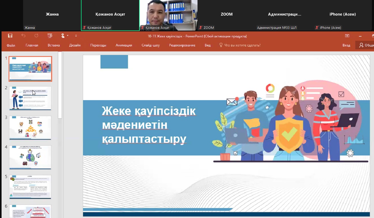 “Ата-аналарды педагогикалық қолдау” бағдарламасы бойынша 10-11 сыныптардың ата-аналарына “Жеке қауіпсіздік мәдениетін қалыптастыру” тақырыбында жиналыс өткізілді.