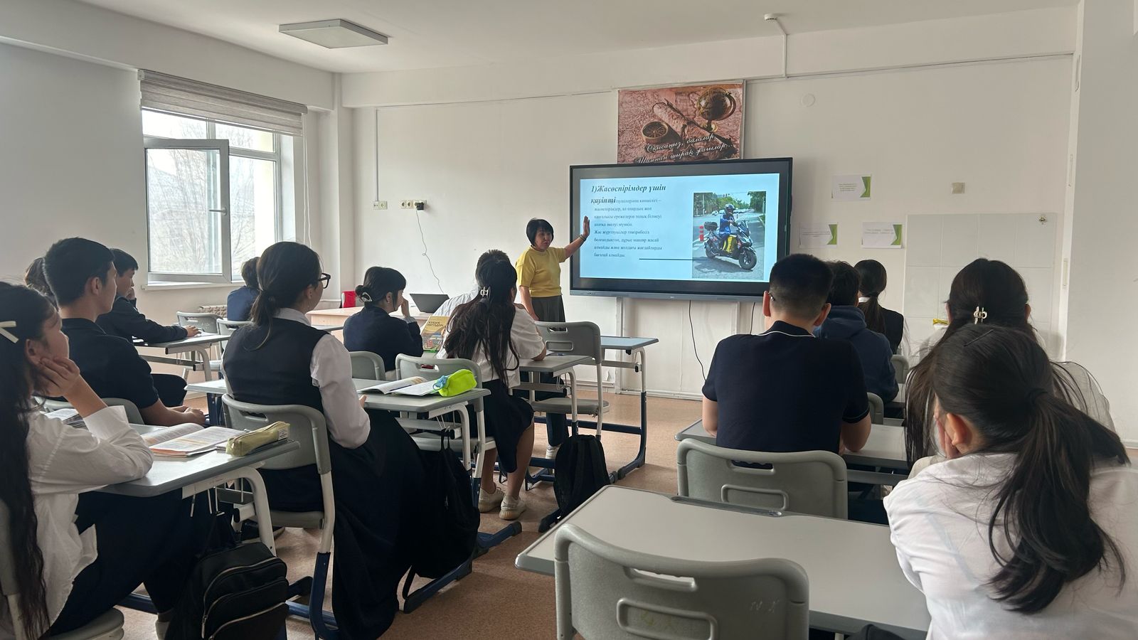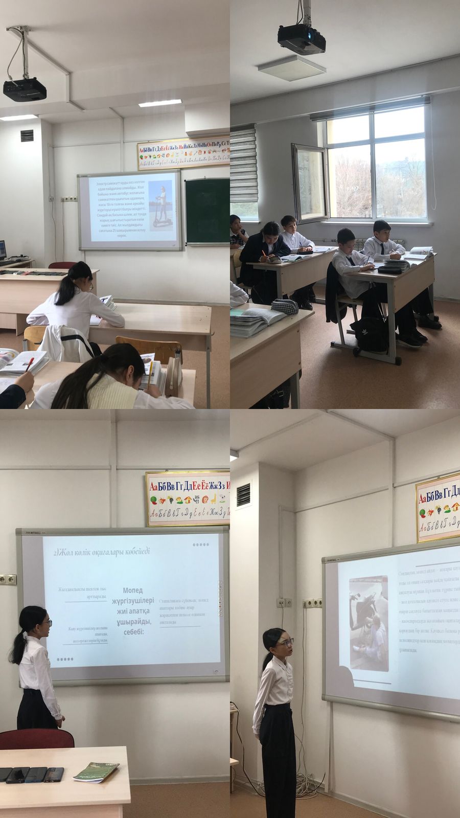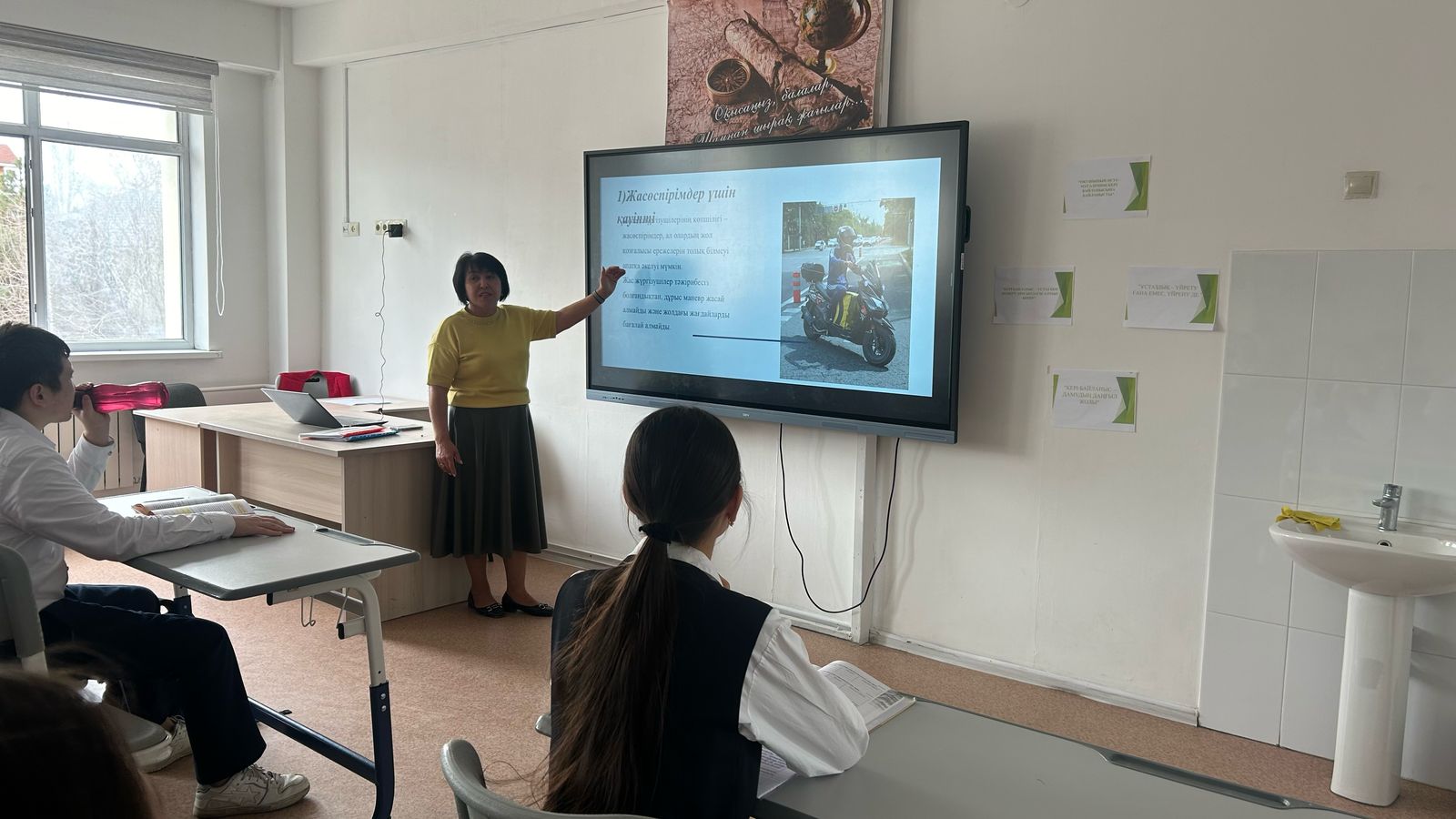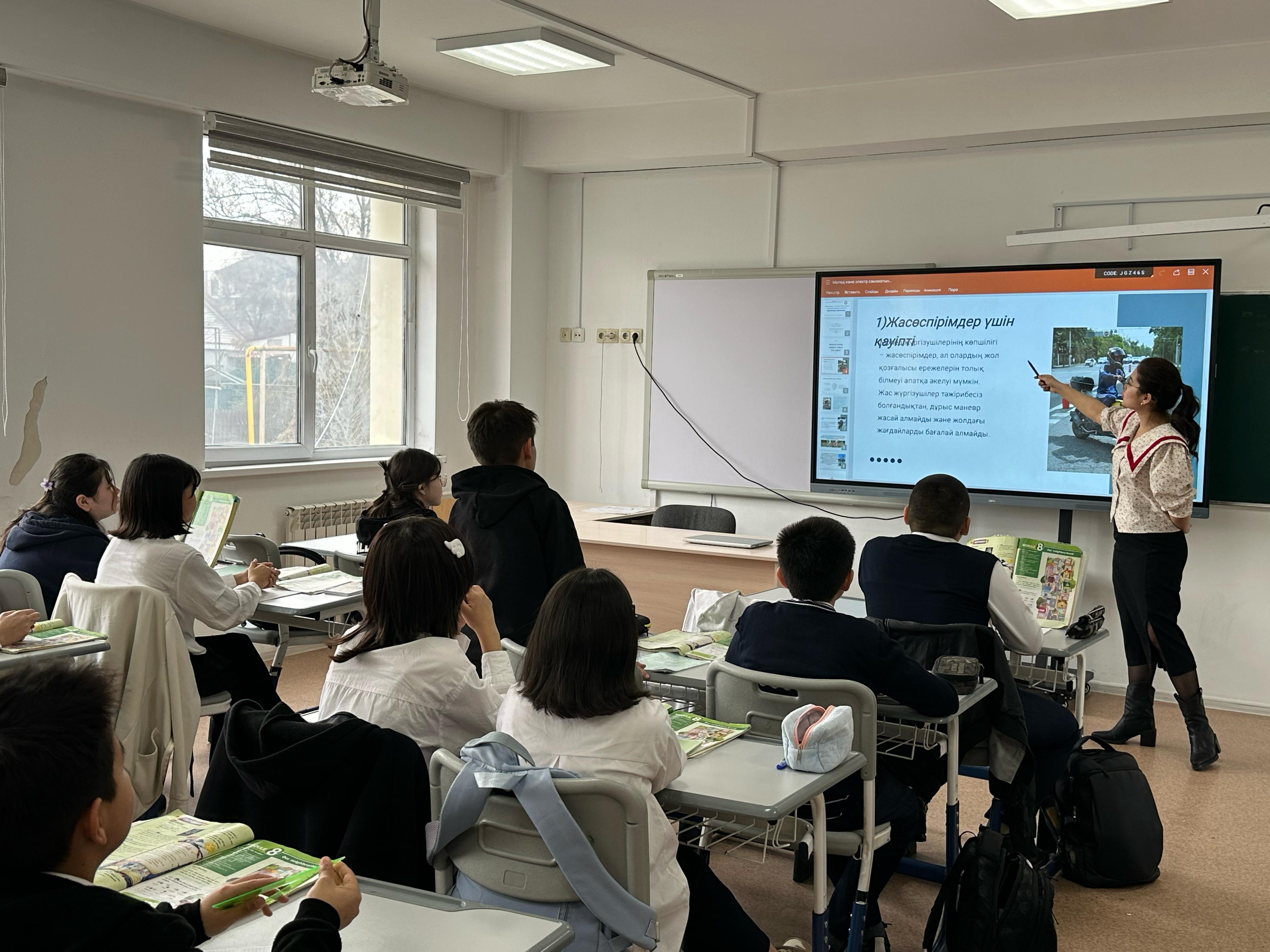 Жол ережесін сақтау - қауіпсіздік кепілі, ережені сақтау - баршаның міндеті. Бүгін мектебімізде 01.04.2025ж күні мектеп оқушыларына жолда жүру ережесі бойынша, жол қозғалысы ережелеріне электрсамокаттар мен мопедтерді басқару бойынша қауіпсіздік сабағы өтілді.