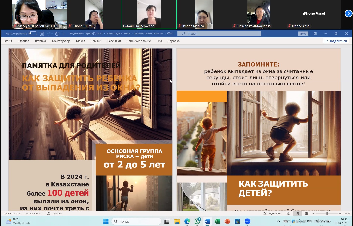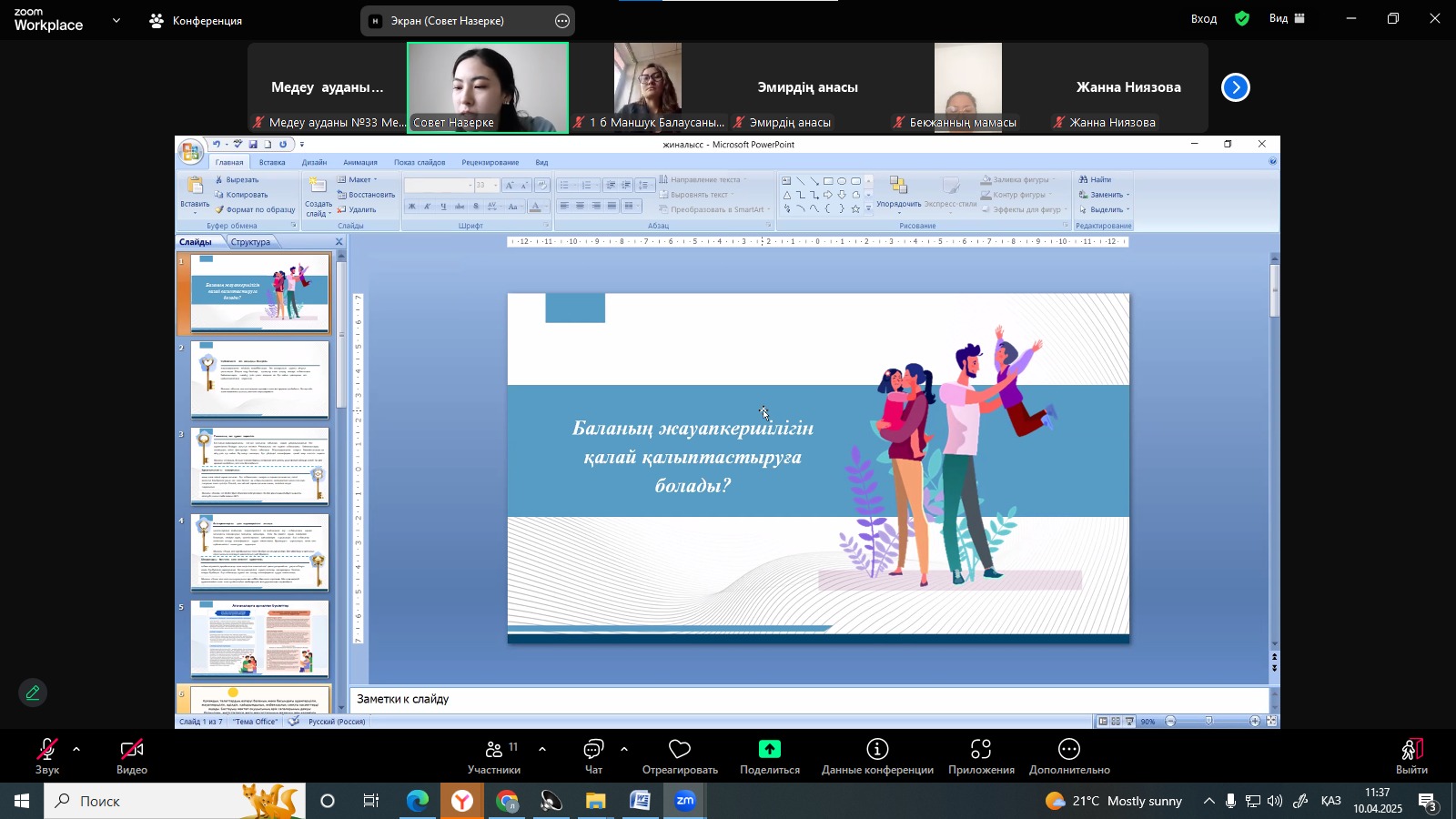№33 мектеп-лицейінде 2024-2025 оқу жылының 4-тоқсанға арналған 10.04-11.04 күні онлайн ата-аналар жиналысы өткізілді. Тақырыбы: «Баланың жауапкершілігін қалай қалыптастыруға болады?