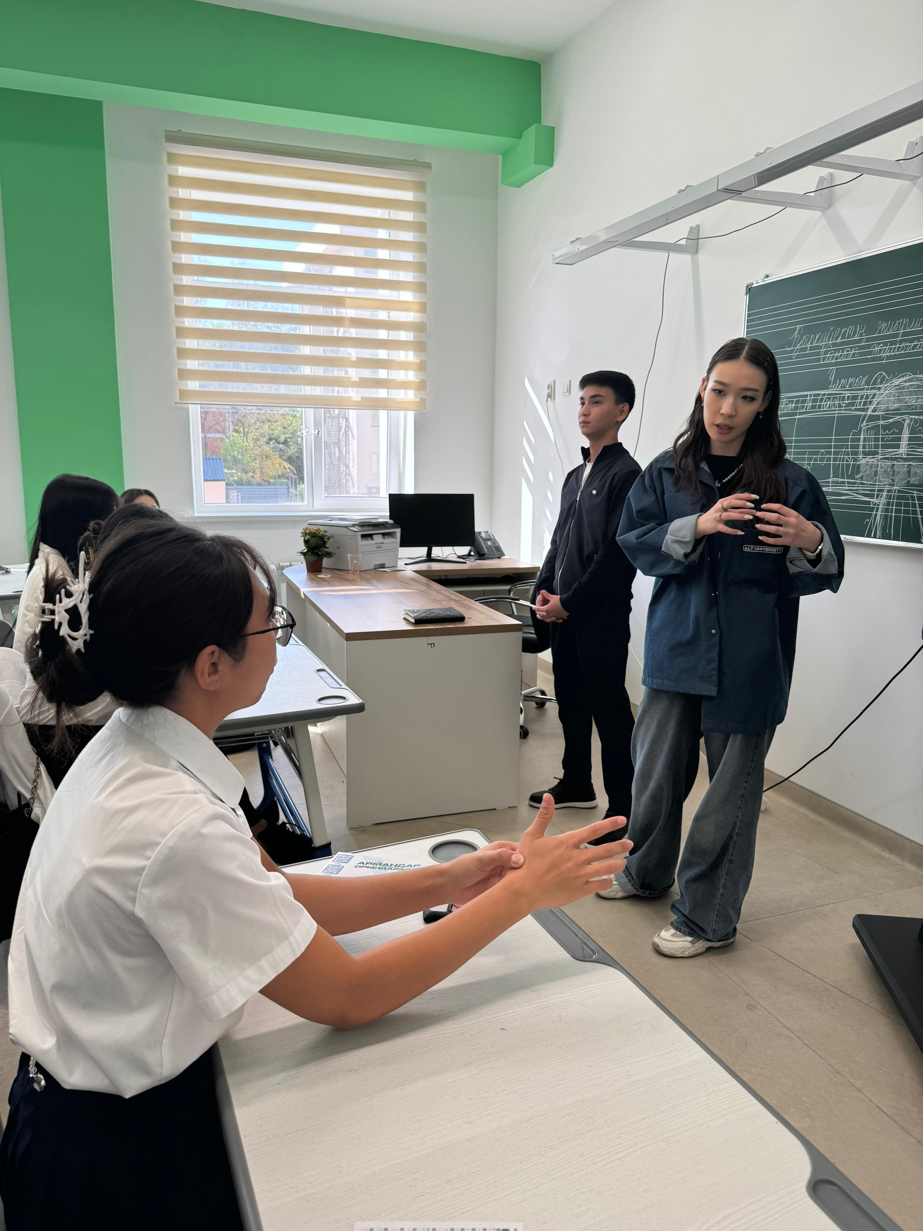 Мектебімізде 11-сынып оқушыларымен кәсіби бағдар беру мақсатында ALT университетінің мамандары келіп, профориентациялық жұмыс жүргізді.