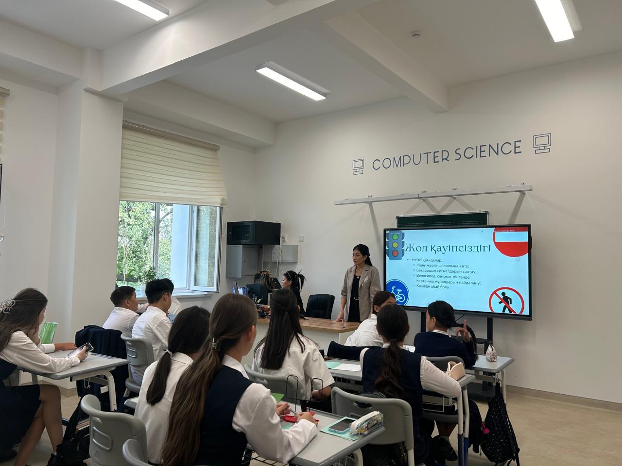 Бүгін мектебімізде «Жол қауіпсіздігі» тақырыбында тәрбие сағаты өткізілді. Шараның мақсаты – оқушыларға жолда жүру ережелерін түсіндіру, қауіпсіздік мәдениетін қалыптастыру және жазатайым оқиғалардың алдын алу.