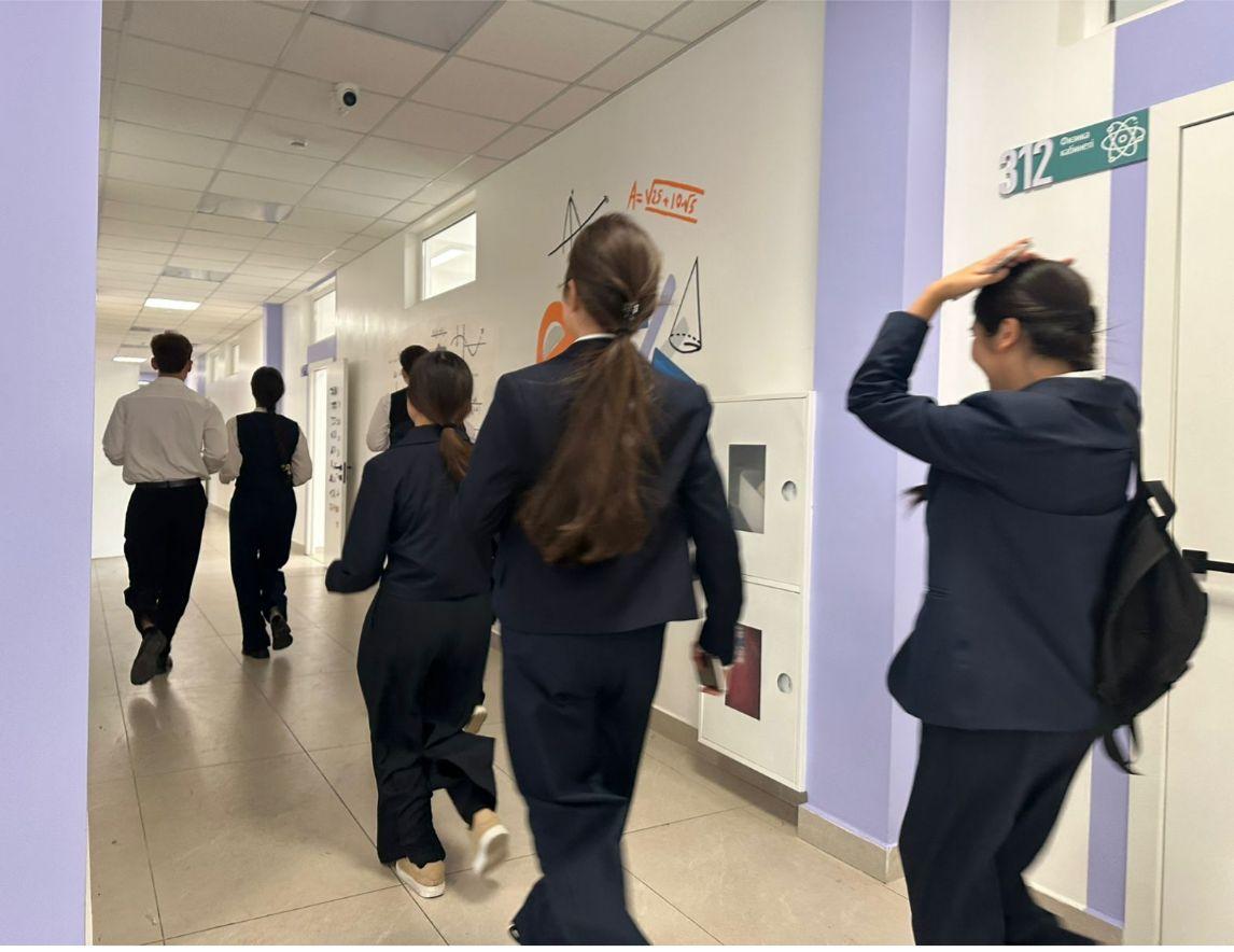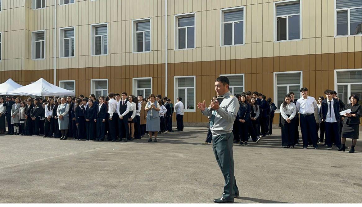 "Жер сілкінісі мен өрт кезінде басшы құрамның, қызметкерлер мен оқушылардың әрекеті" тақырыбы бойынша өрт болған жағдайда нысандық жаттығулар мен эвакуациялық жаттығулар өткізілді. "Баршаның назарына" дабылы берілді, ТЖ кезінде эвакуациялау жоспарына сәйкес белгіленген орындарда эвакуациялау және жинау басталды. Жаттығу барысында әкімшілік пен қызметкерлер жер сілкінісі мен өрт болған жағдайда эвакуацияны ұйымдастыру мен жүргізуде практикалық дағдыларды пысықтады.