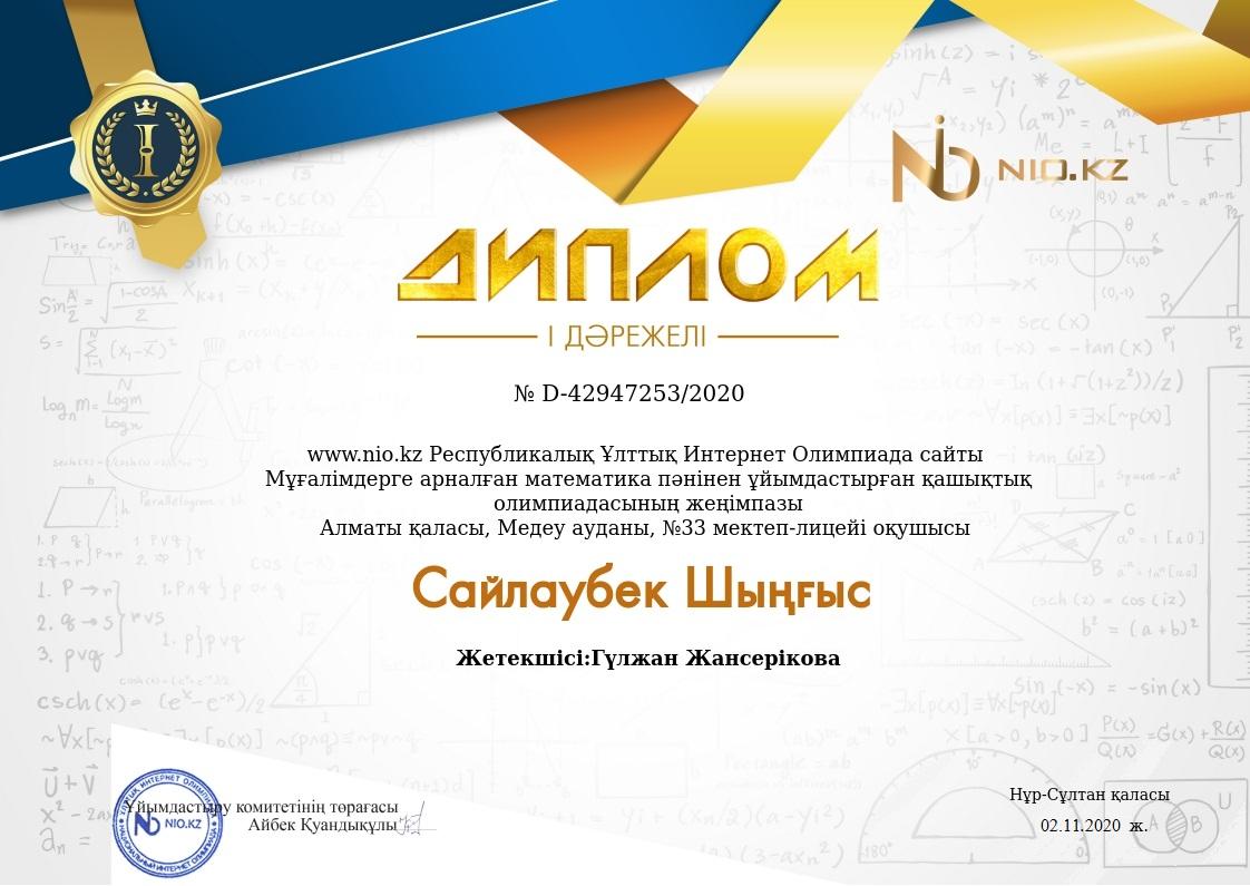 Республикалық Ұлттық Интернет Олимпиада сайты математика пәнінен ұйымдастырған қашықтықтан өткізілген олимпиададан 4 “А” сынып оқушысы Сайлаубек Шыңғыс I- орынға ие болды! Жетекшісі: Жансеркеева Гүлжан Токтакыновна Құттықтаймыз 💐💐💐