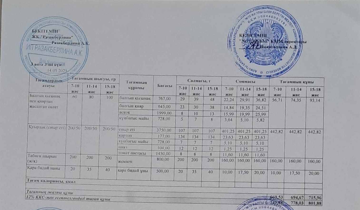 Күнделікті тегін тамақтану мәзірі (14.05.2025)