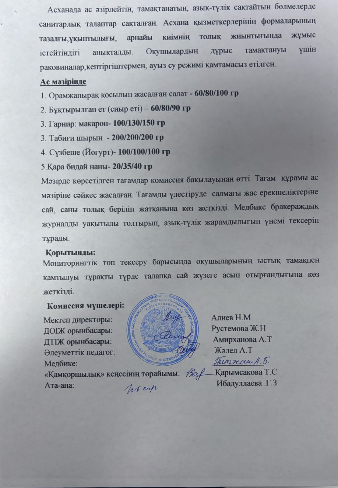 21 январь 2025 0 1 2 3 4 5 Бракеражды комиссия мүшелері 21.01.2025 жылы кезекті тексеру жұмысын жүргізді.