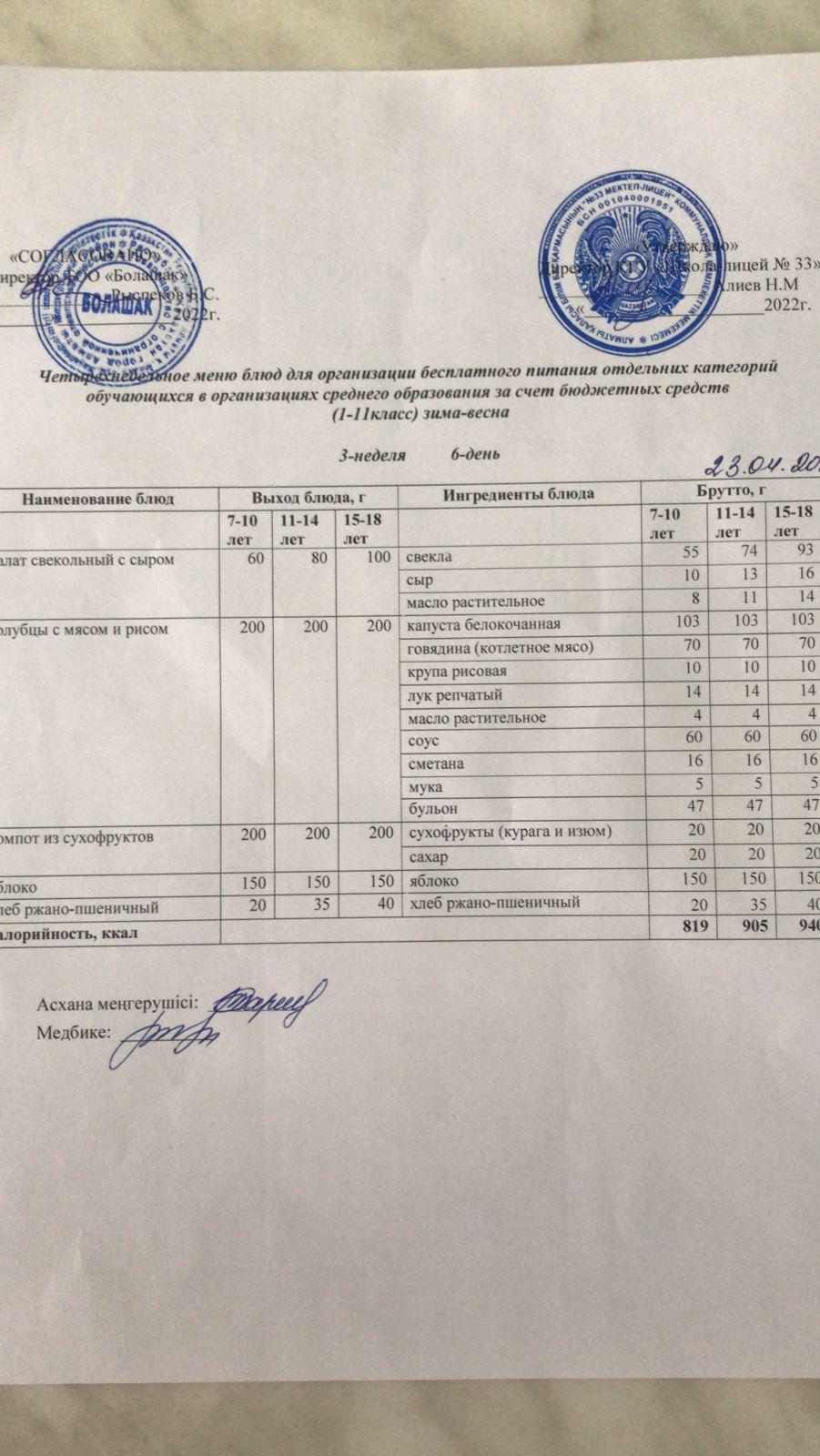 » Ас мәзірі 3-ші апта, 6-ші күн