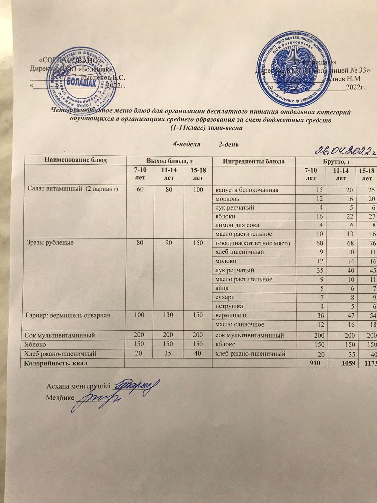 » Ас мәзірі 4-ші апта, 2-ші күн