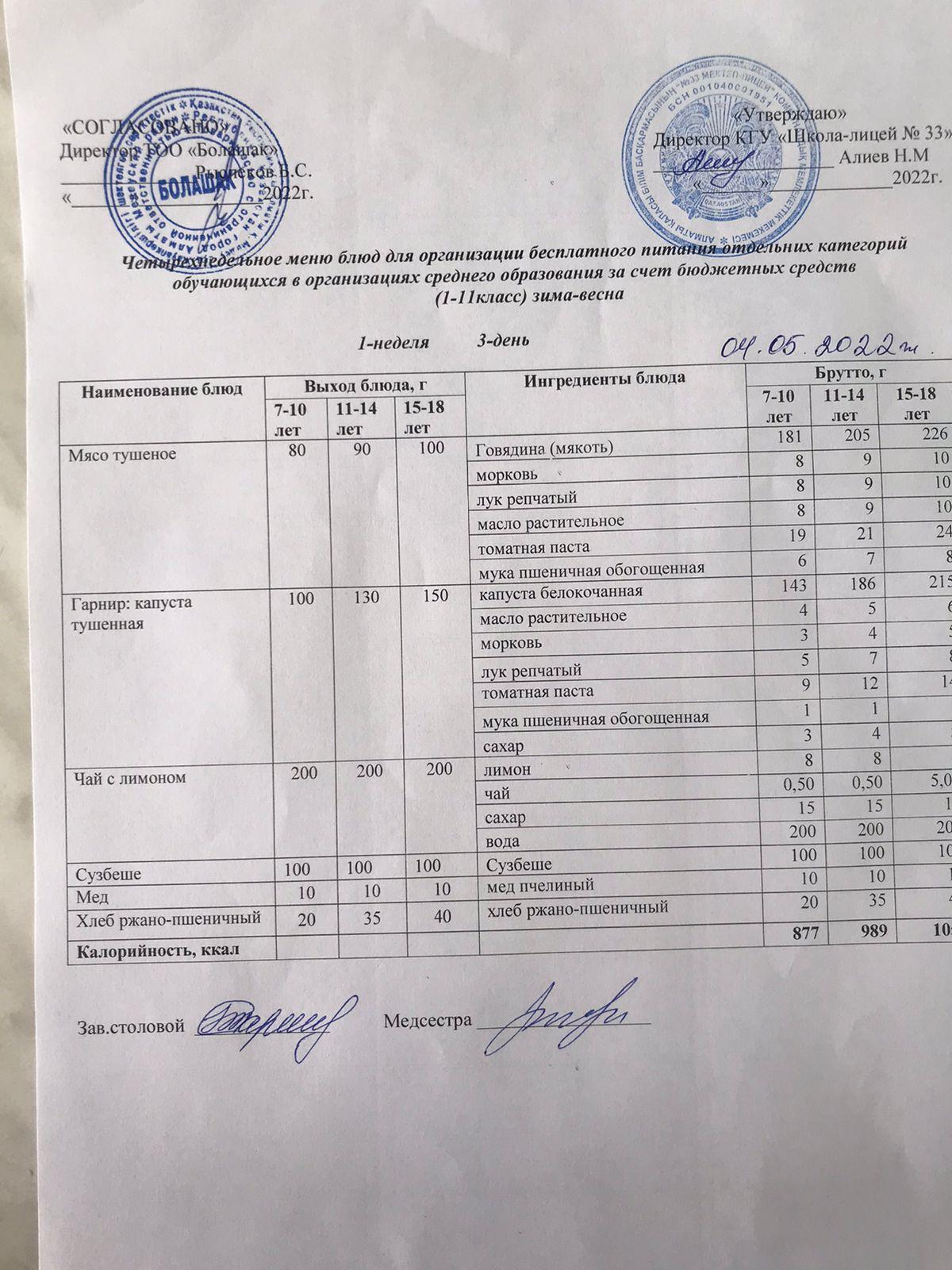 » Ас мәзірі 1-ші апта, 3-ші күн