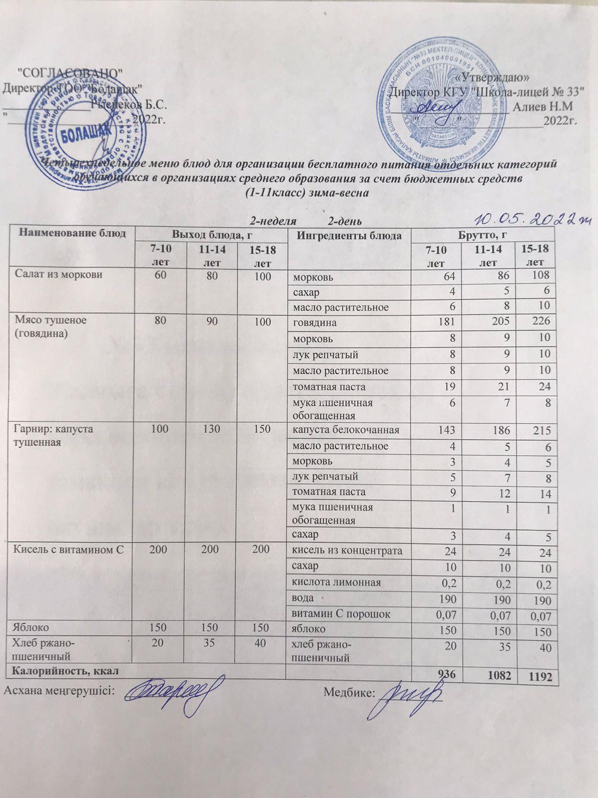 » Ас мәзірі 2-ші апта, 2-ші күн