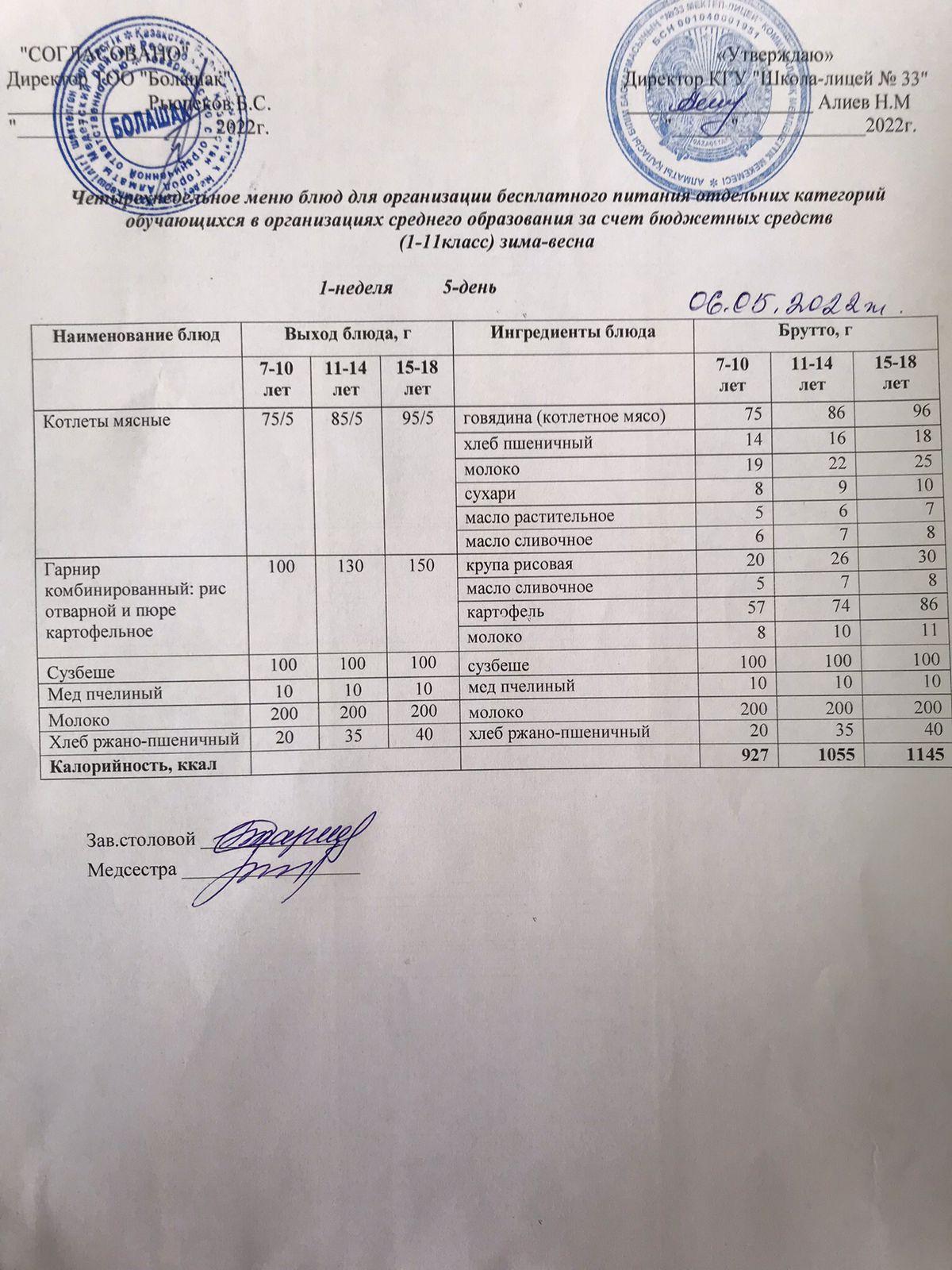 » Ас мәзірі 1-ші апта, 5-ші күн