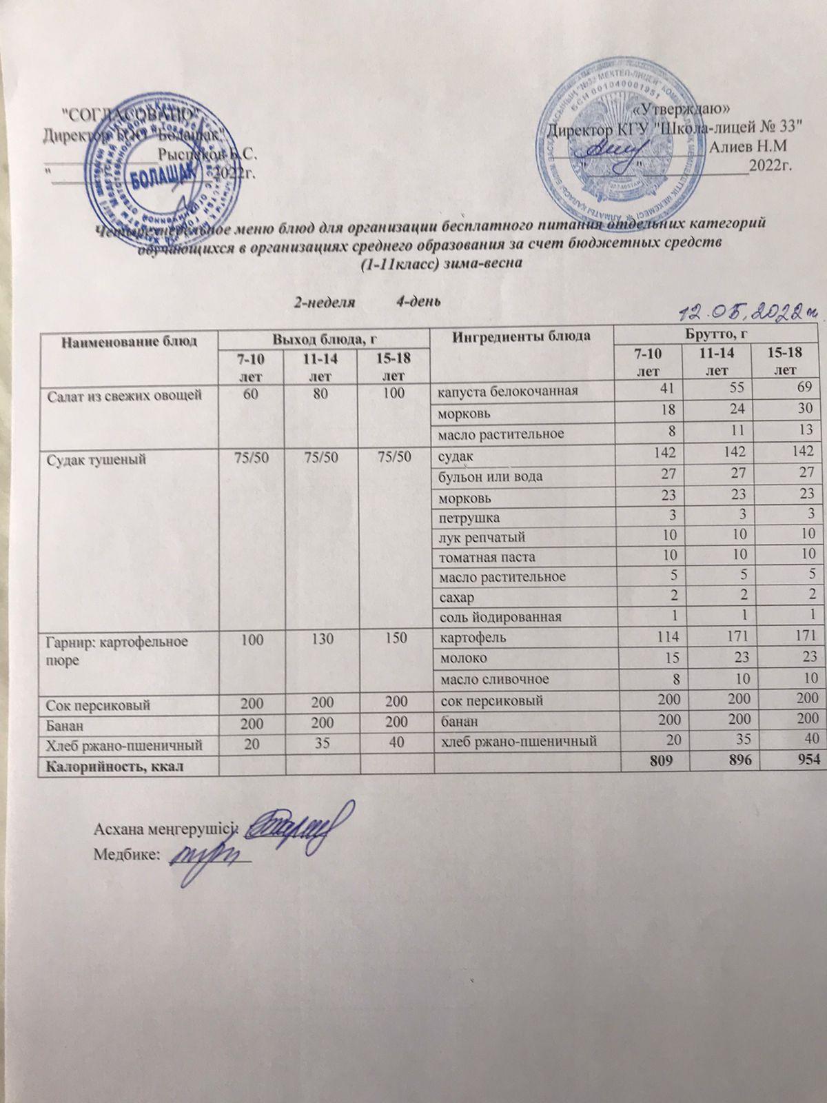 » Ас мәзірі 2-ші апта, 4-ші күн