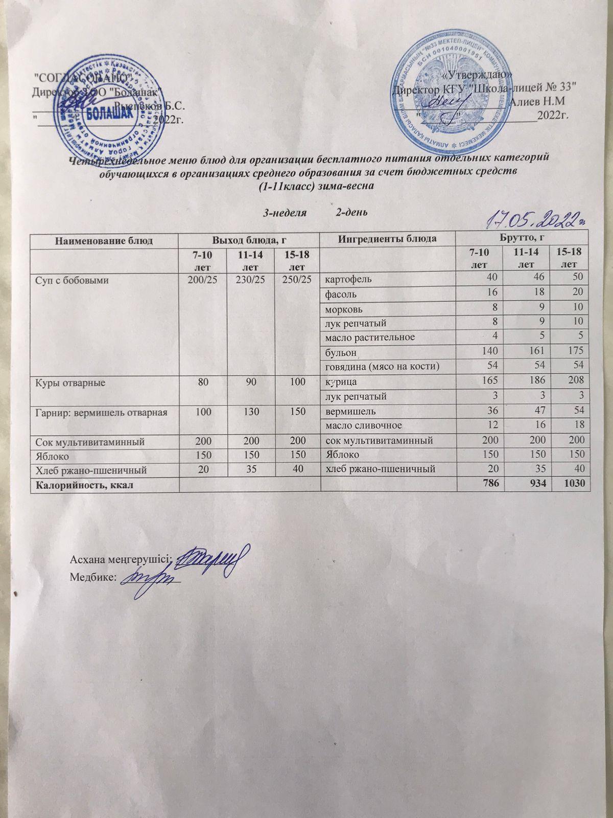 » Ас мәзірі 3-ші апта, 2-ші күн