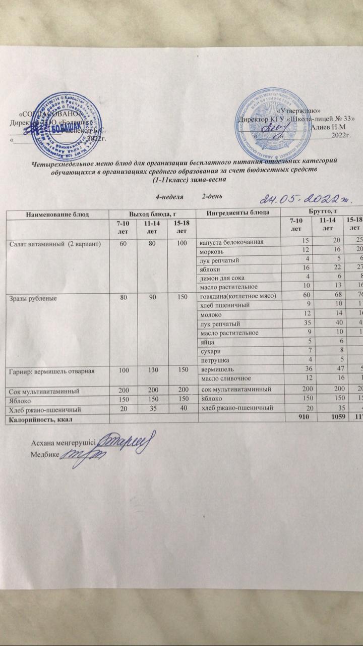 Ас мәзірі 1 апта 4 апта